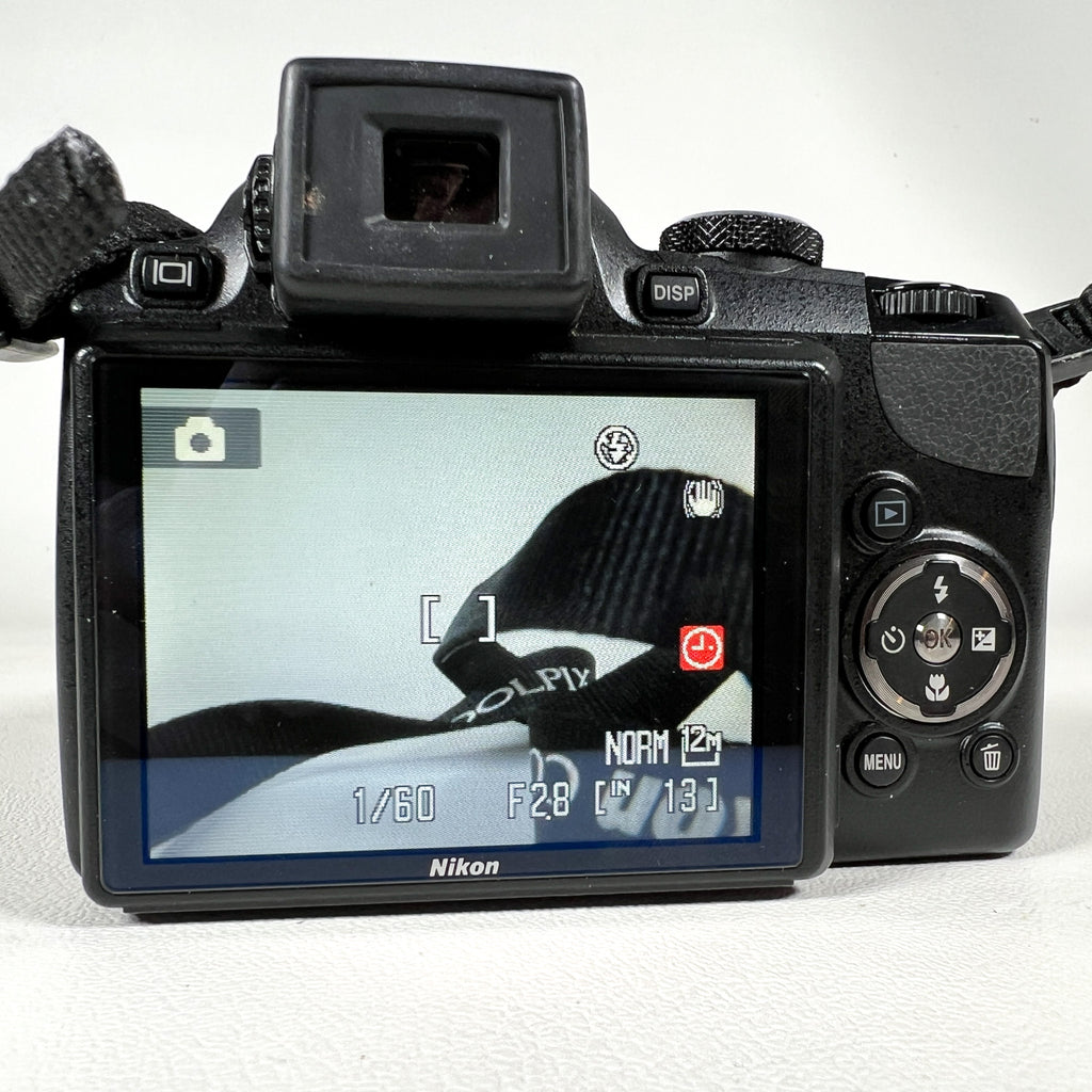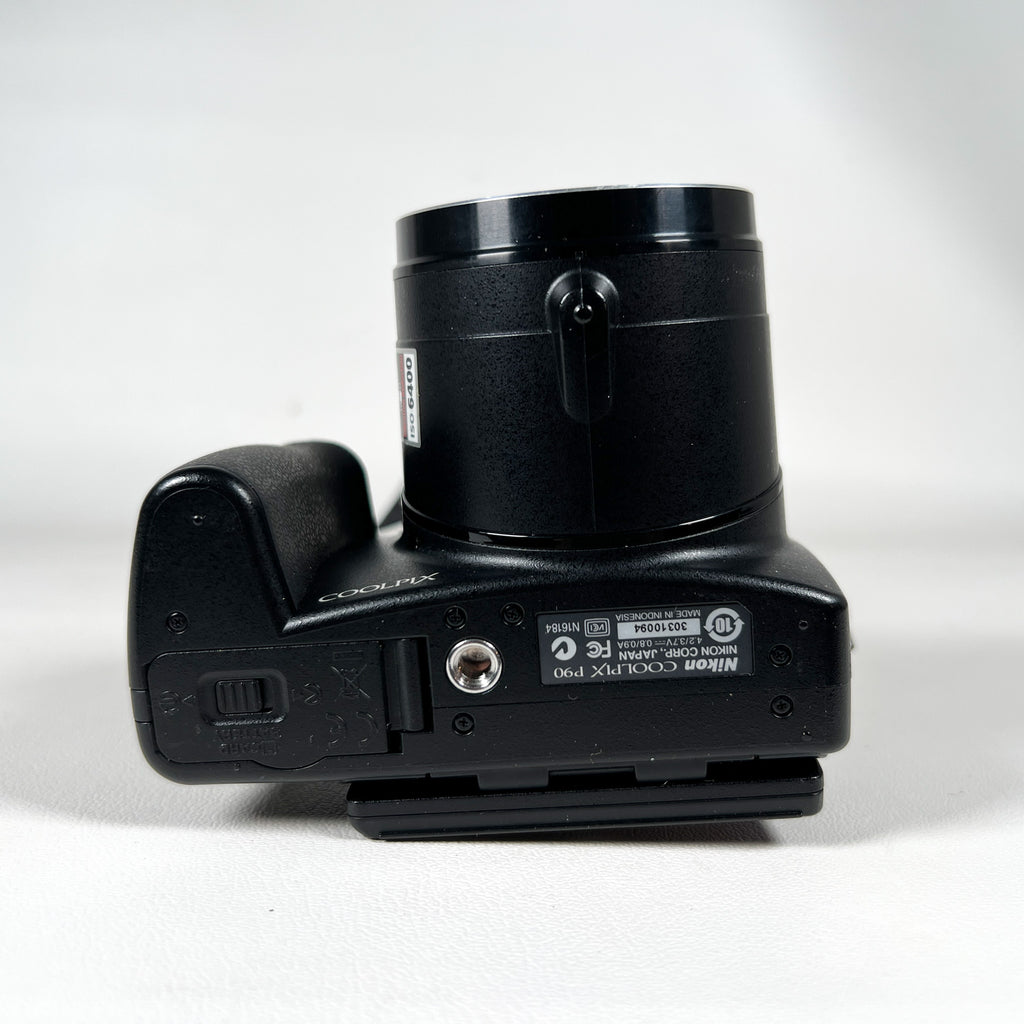 Nikon Coolpix P90 digital camera, Nikon P90 superzoom, 24x optical zoom camera, Nikon bridge camera 2009, CCD sensor Nikon camera, NIKKOR ED VR lens camera, compact superzoom camera, Nikon P90 tested working, beginner digital camera with zoom