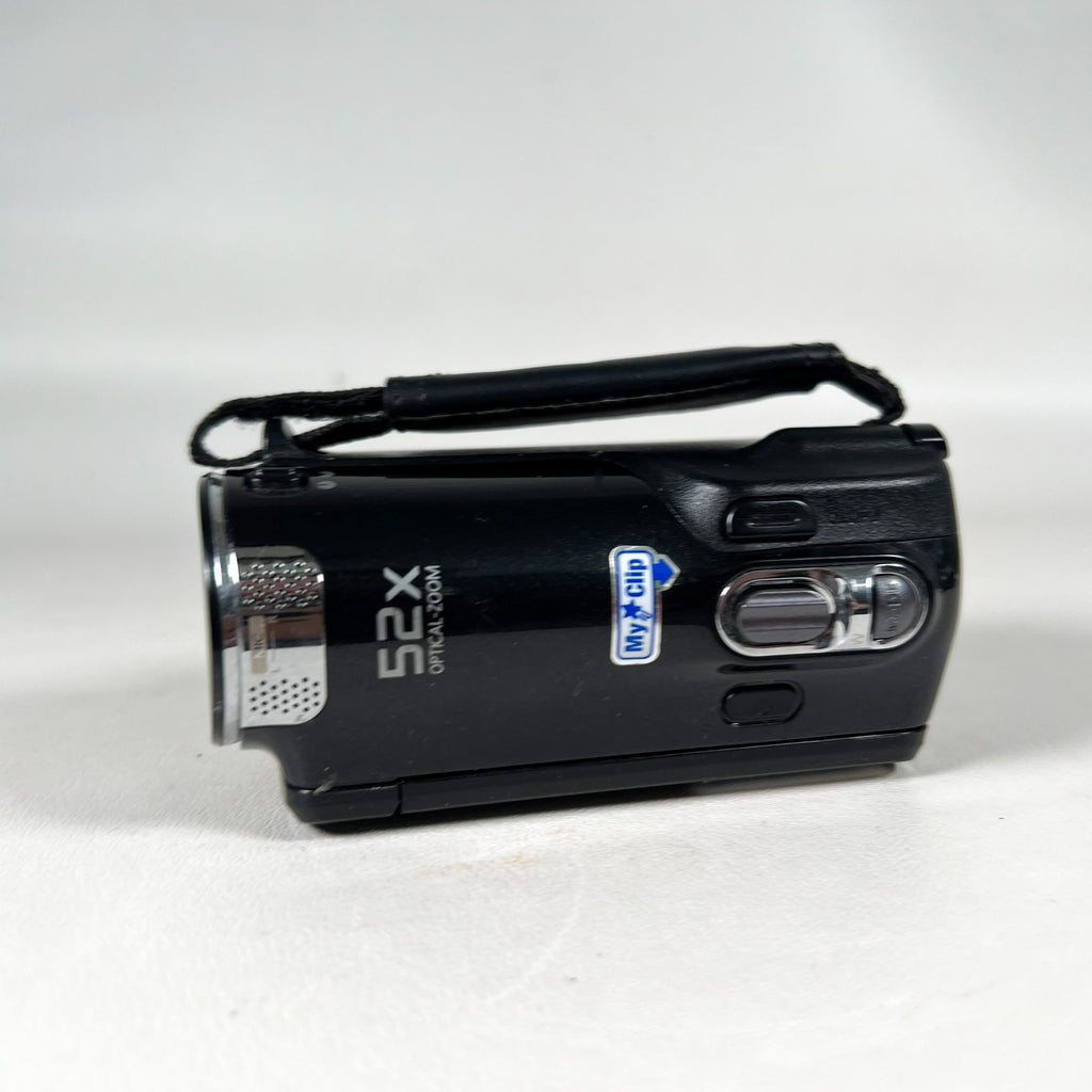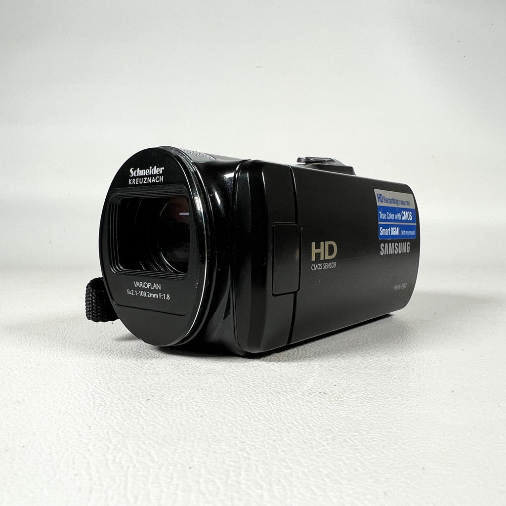 The Samsung HMX-F80 is a compact and easy-to-use HD camcorder designed for everyday video recording. Released in the early 2010s, it records HD video (1280×720) using efficient H.264 recording, producing small file sizes while maintaining solid image quality. This model is lightweight and simple to operate, making it a great option for casual video capture, travel, family events, or digitizing memories.