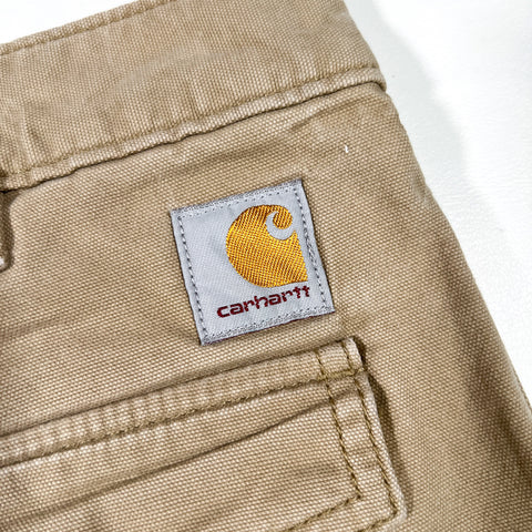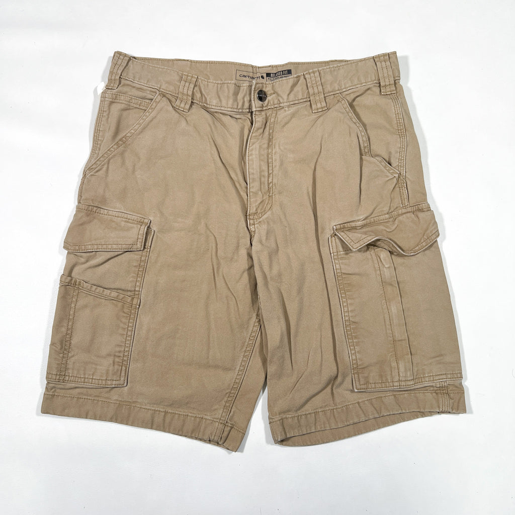 Modern Carhartt cargo shorts in a classic khaki colorway, featuring a relaxed fit with durable cotton construction built for everyday wear. Designed with multiple utility pockets, including dual cargo pockets and rear flap pockets, making them functional and versatile.