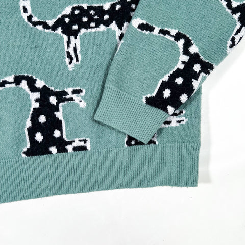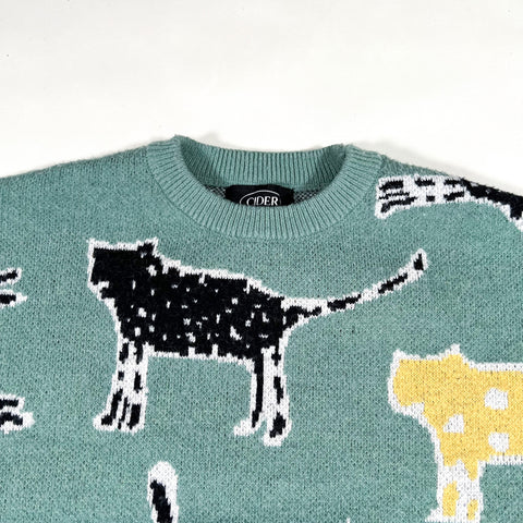 Search terms: Cider sweater, cat print sweater, modern knitwear, patterned pullover, animal print sweater, cozy aesthetic outfit, colorful knit, graphic sweater, Y2K inspired style, statement sweater