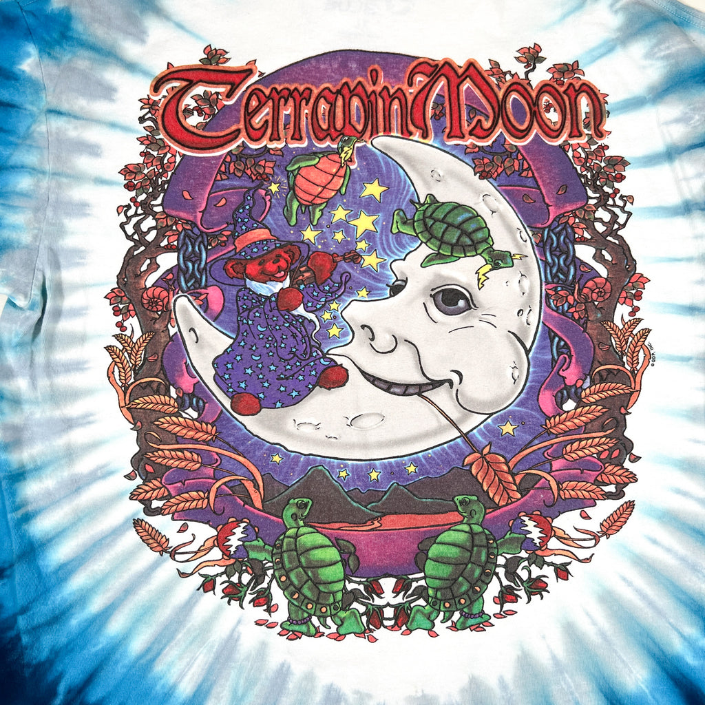 grateful dead terrapin moon shirt, liquid blue tie dye dead shirt, terrapin station tee, dancing bear wizard, modern grateful dead t-shirt, 2000s deadhead tee, XL grateful dead shirt, psychedelic band shirt, y2k dead merch