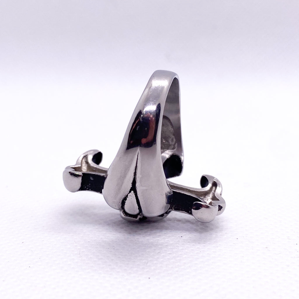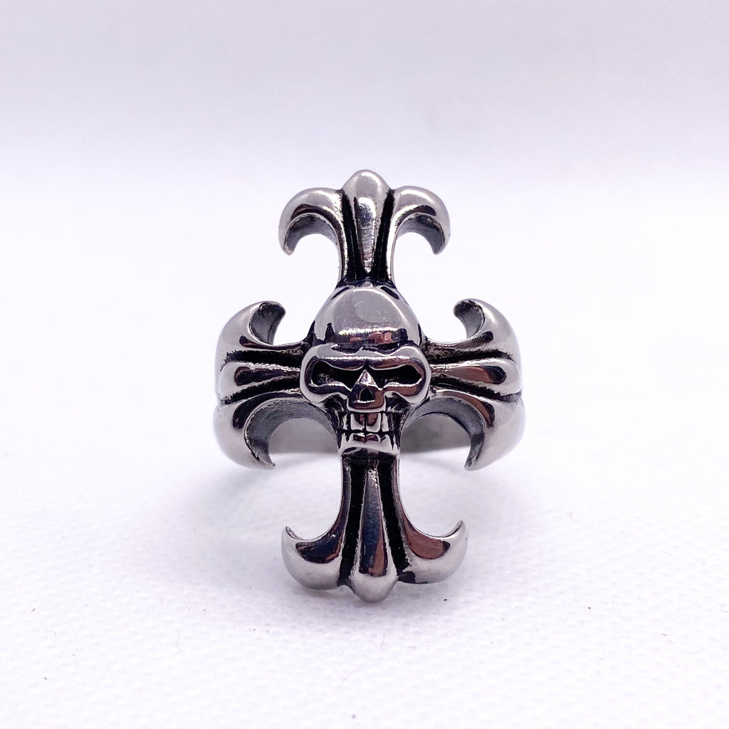 fleur de lis skull ring, gothic cross ring, stainless steel skull ring, biker jewelry, gothic men’s ring, punk ring, heavy metal jewelry, skull cross ring, modern gothic accessories, cobblestore jewelry