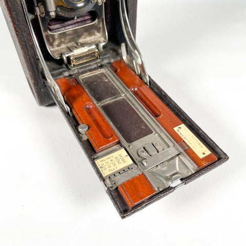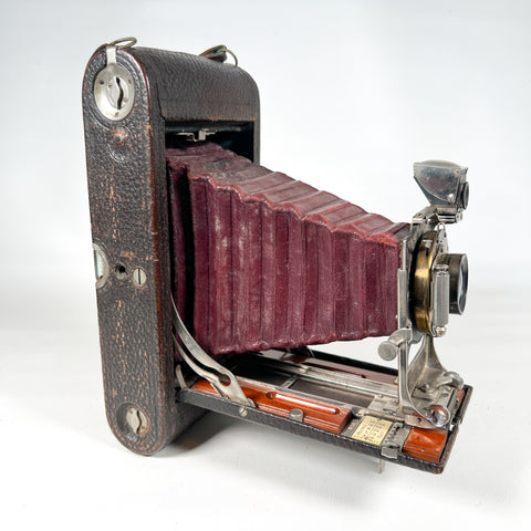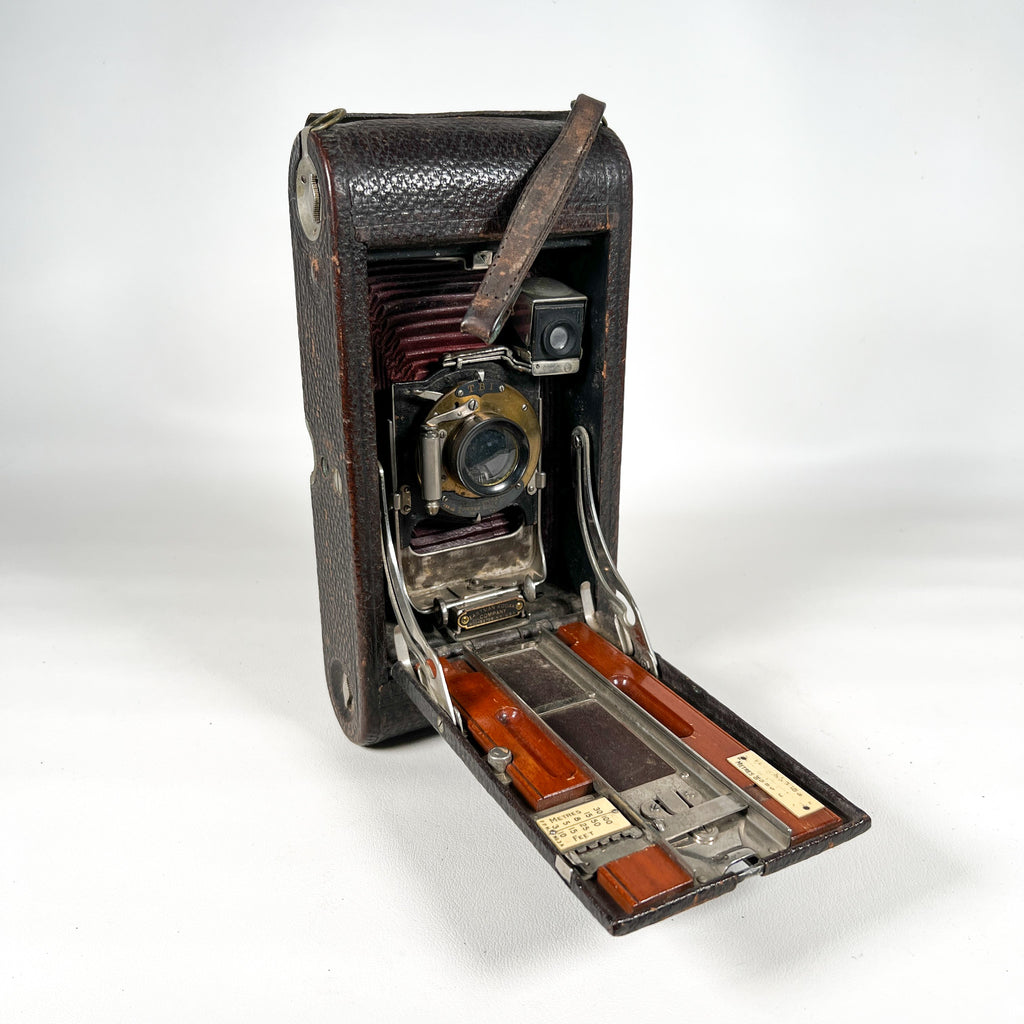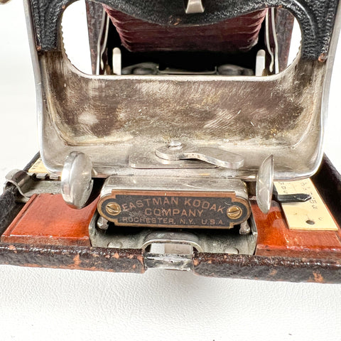Kodak No. 3A Folding Pocket Kodak, Kodak 3A Model B-2, 122 roll film camera, postcard format camera, red bellows folding camera, Eastman Kodak Rochester NY, antique bellows camera, early 1900s Kodak camera, vintage folding camera, collectible Kodak camera, camera display prop, restoration camera project