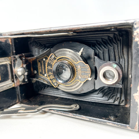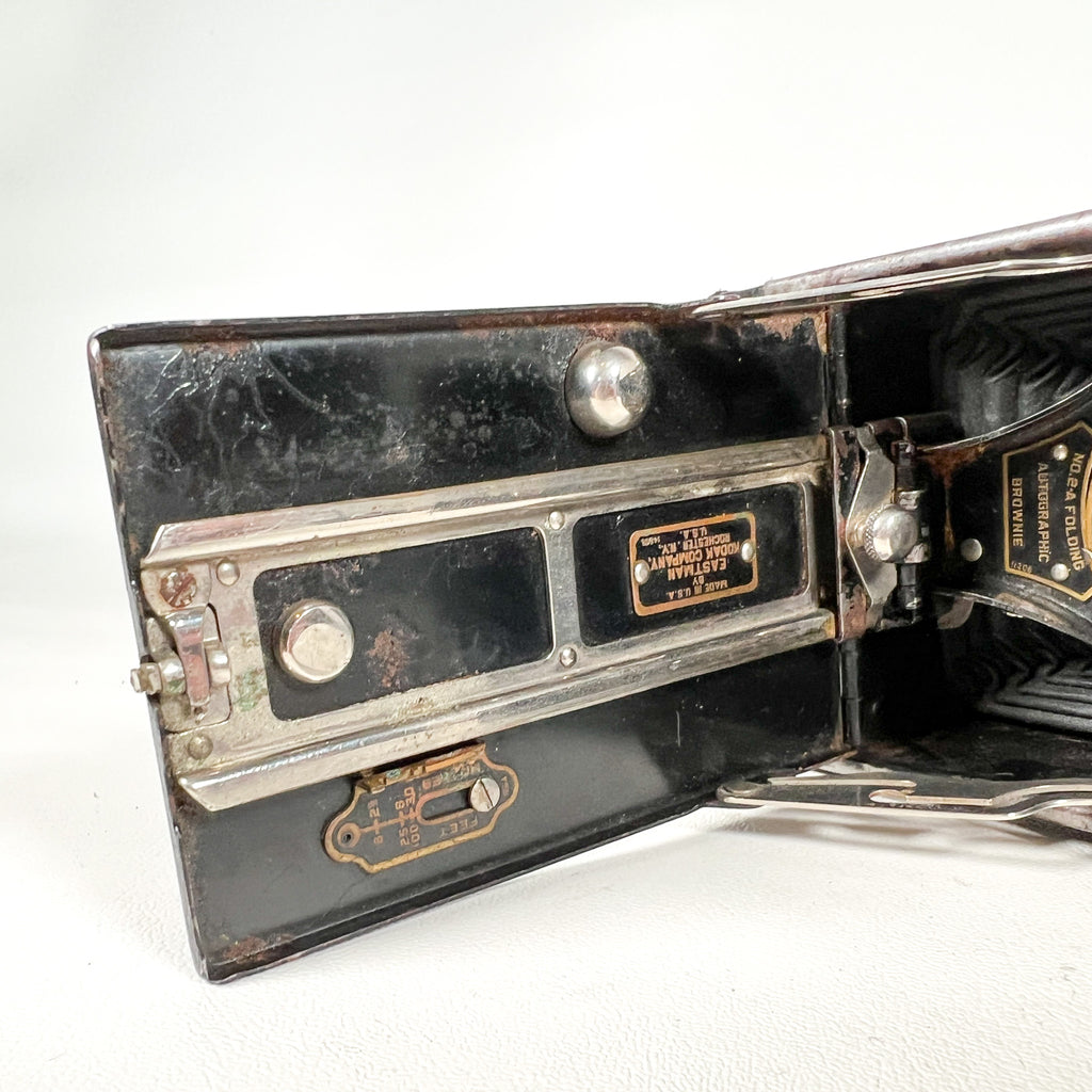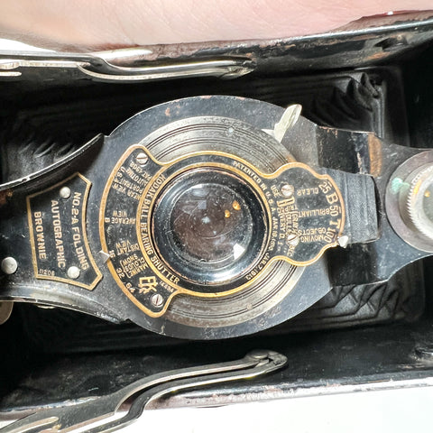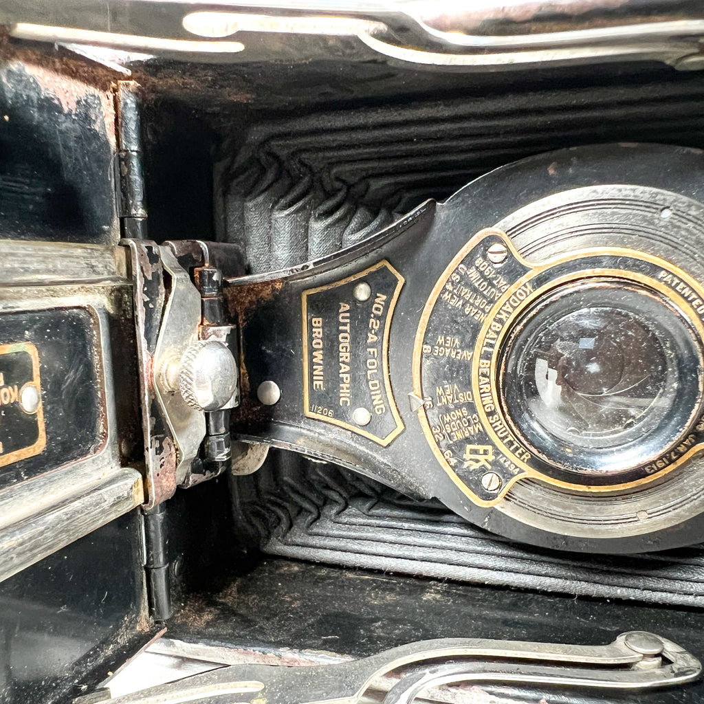Kodak No 2A Folding Autographic Brownie, vintage Kodak Brownie camera, 122 roll film camera, autographic camera, early Kodak folding camera, Eastman Kodak Rochester NY, antique film camera, camera restoration project, collectible camera display, early photography equipment
