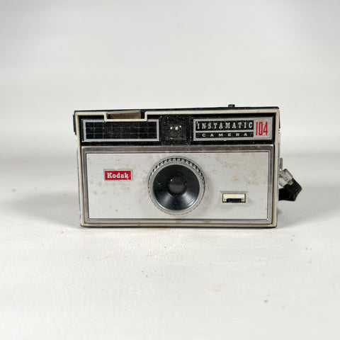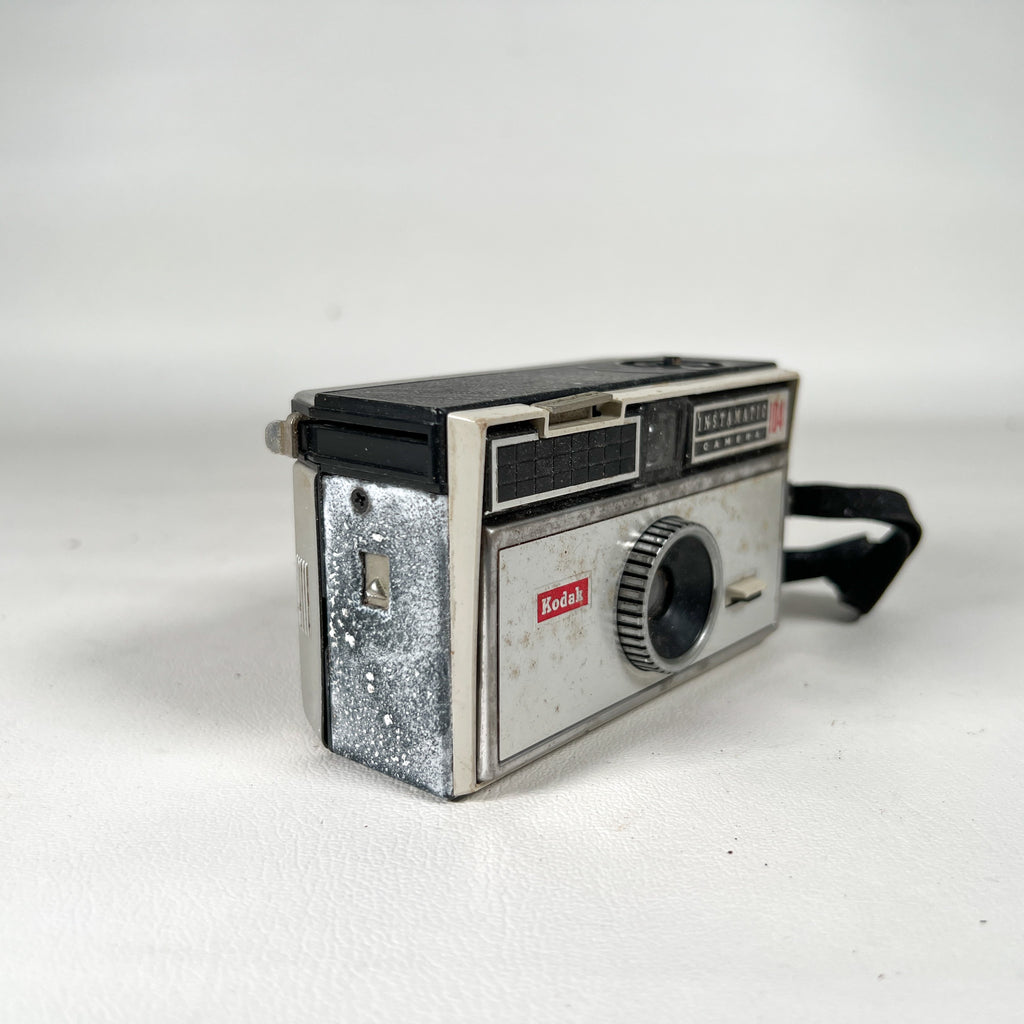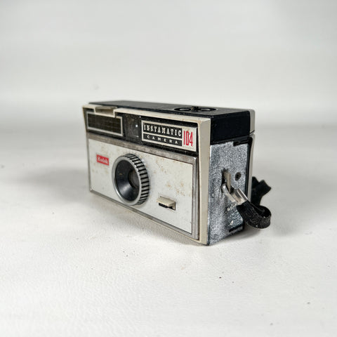 Keywords: Kodak Instamatic 104, 1965 Kodak camera, vintage Instamatic camera, 126 film camera, mid century Kodak, vintage film camera display, camera parts repair