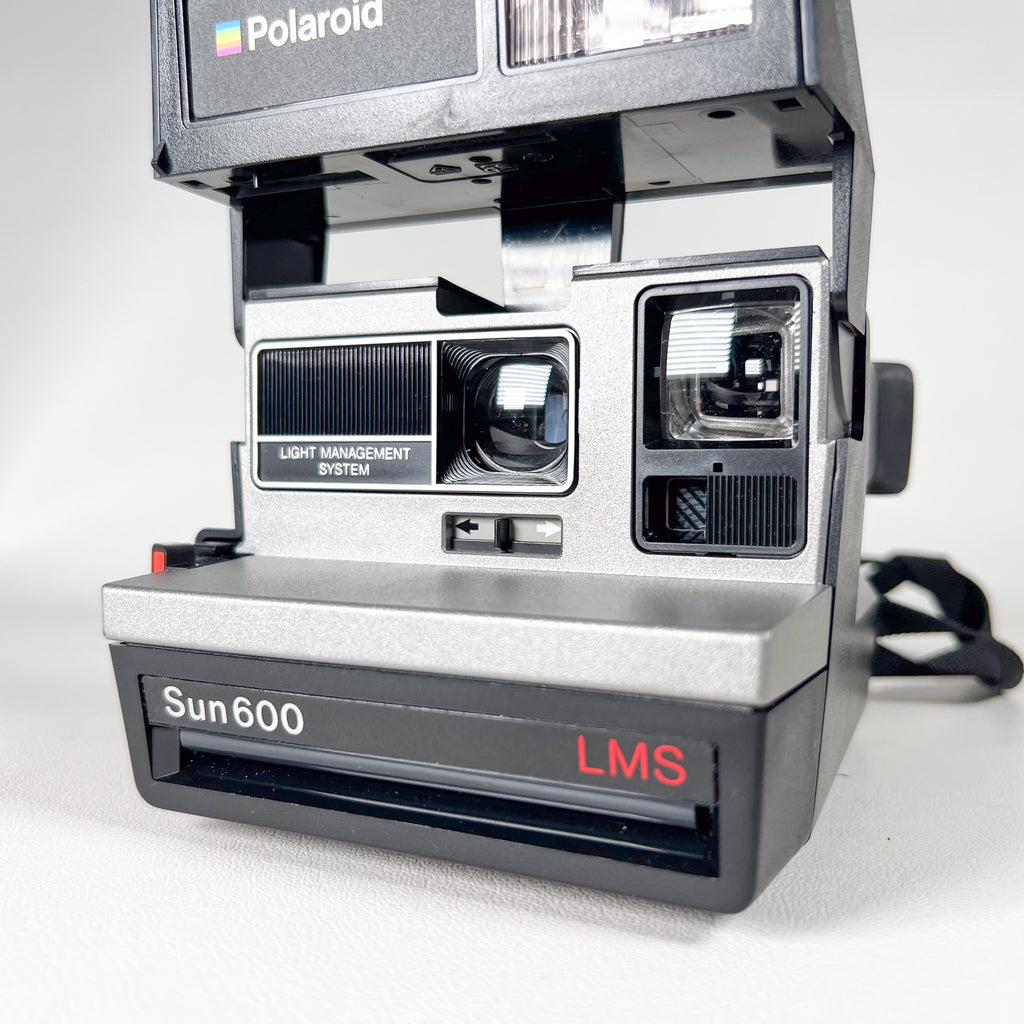 polaroid sun 600 lms, polaroid instant film camera, untested polaroid camera, vintage polaroid 600, 80s instant film camera, polaroid 600 film compatible, light management system, cobblestore vintage