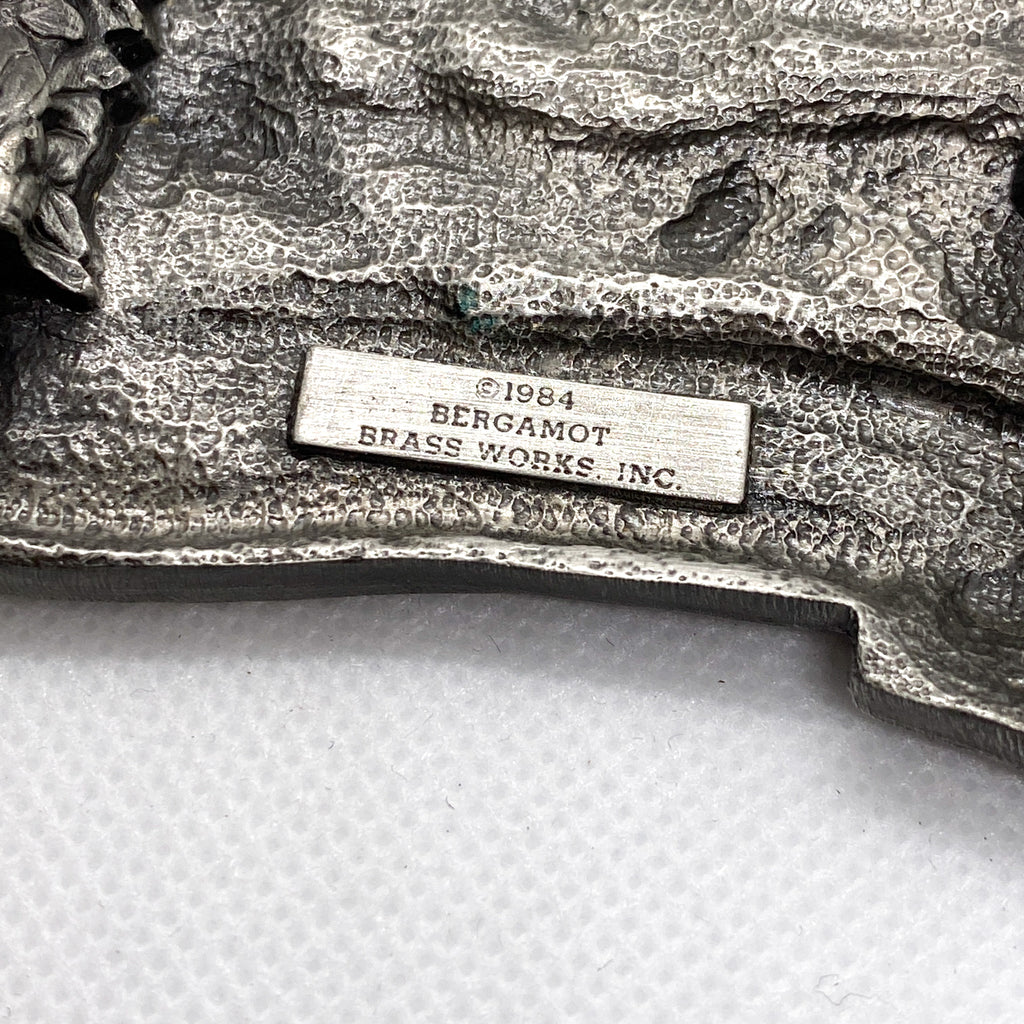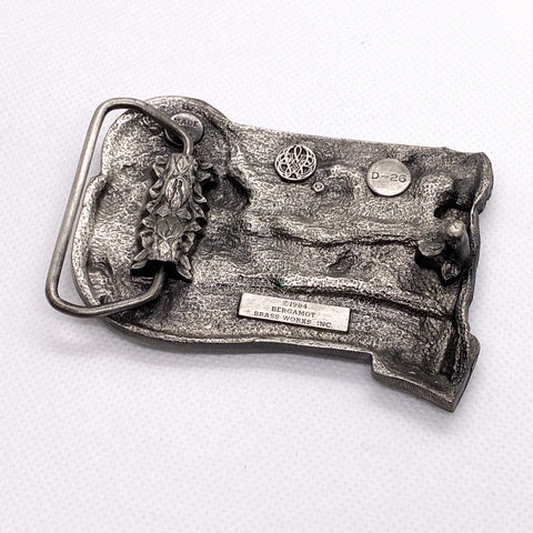 Stamped on the back with the Bergamot Brass Works mark and 1984 date, confirming vintage production. Solid metal construction with great depth and texture in the wildlife scene. A standout collectible piece for buckle collectors, New York memorabilia fans, or anyone building a vintage western or Americana belt setup.