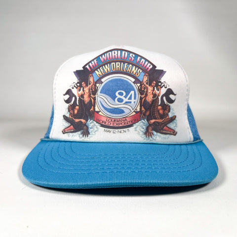 vintage world’s fair hat, 1984 new orleans world’s fair, louisiana world exposition hat, vintage mesh snapback, 80s snapback hat, new orleans souvenir hat, vintage expo hat, blue mesh cap