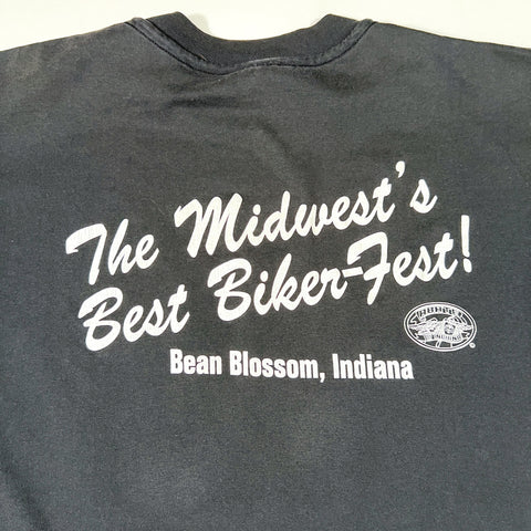 vintage biker shirt, 90s motorcycle tee, ABATE Indiana Boogie, Bean Blossom festival shirt, 1991 biker rally tee, Midwest motorcycle event, vintage Harley style shirt, Hanes Fifty-Fifty USA tee, biker festival collectible
