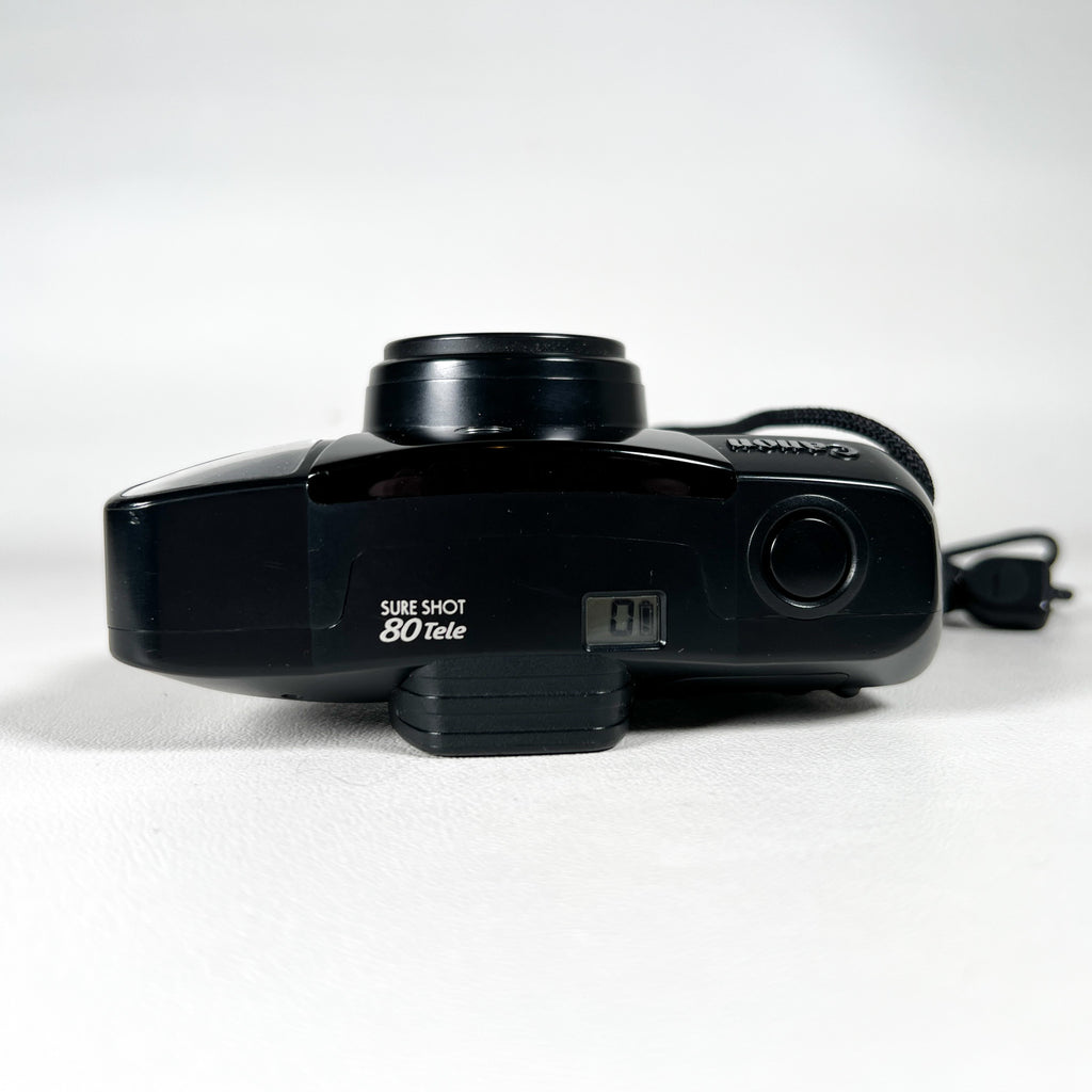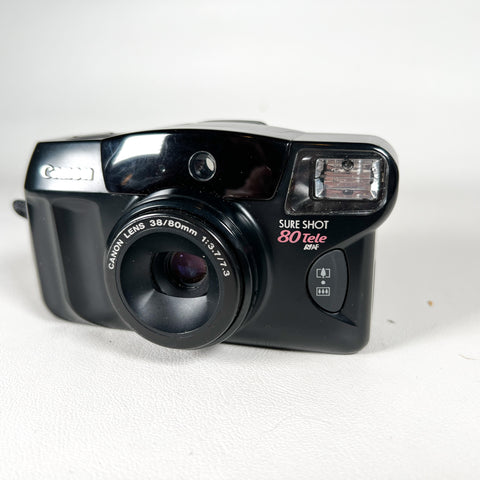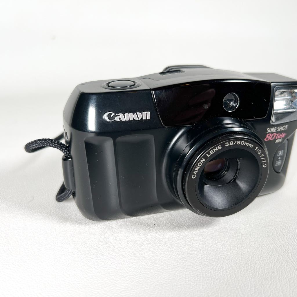 Canon Sure Shot 80 Tele, Canon 35mm camera, vintage Canon point and shoot, Canon AF 80 Tele, 1990s film camera, compact autofocus camera, Canon Japan, tested film camera, beginner film camera, Canon Sure Shot series, retro film photography