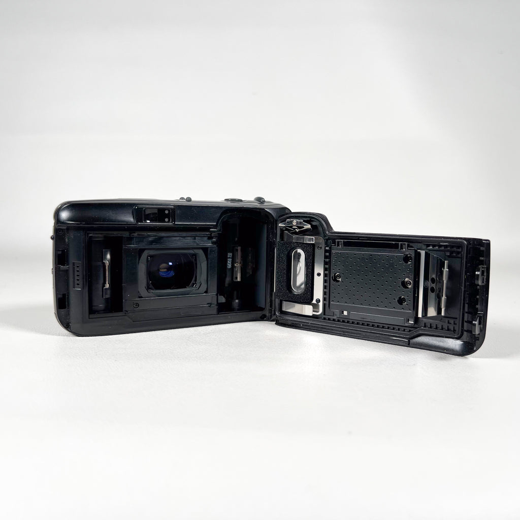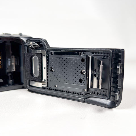 Tested and fully functional. Surface wear throughout consistent with age. Clamshell opens and closes properly. Clean viewfinder and film chamber. All functions work as intended.