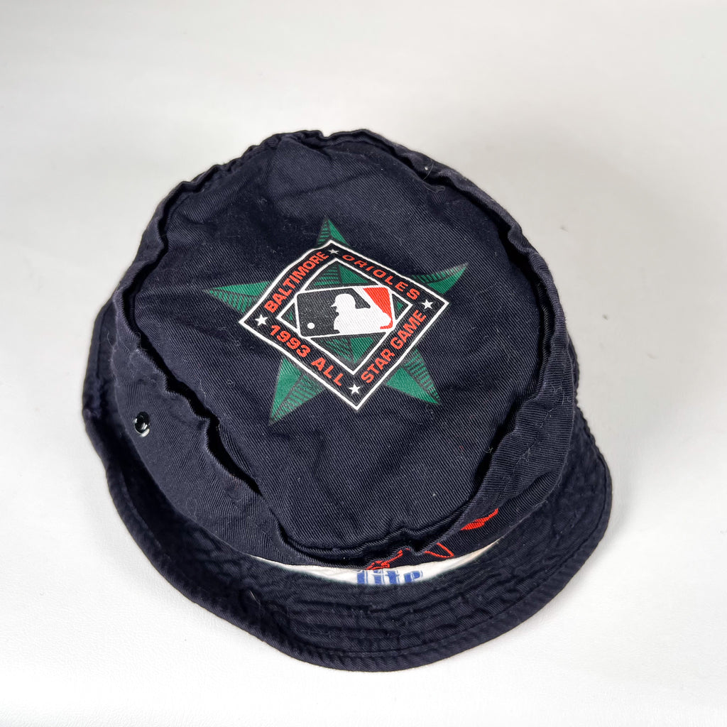 1993 all star game hat, orioles bucket hat, mlb promo hat, miller lite hat, vintage beer promo, 90s bucket hat, baseball bucket hat, retro mlb merchandise, baltimore orioles hat, vintage sports hat