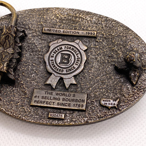Search terms: jim beam belt buckle, north carolina buckle, 1993 bourbon collectible, vintage barware, whiskey memorabilia, bourbon promo buckle, metal belt buckle, jim beam limited edition