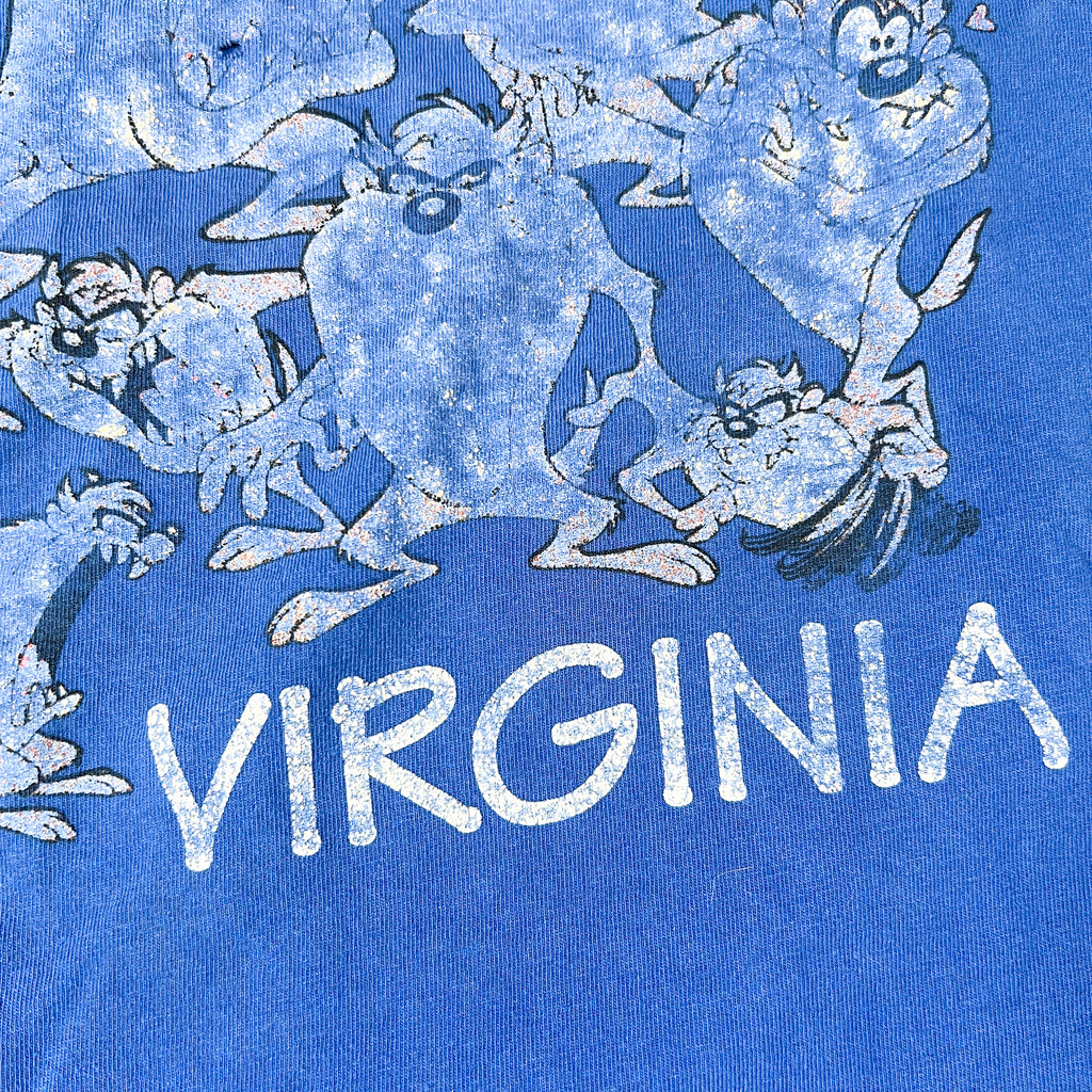Looney Tunes shirt, vintage Warner Bros tee, 90s Taz shirt, Velva Sheen made in USA, Virginia souvenir shirt, vintage cartoon tee, Tasmanian Devil t-shirt, single stitch blue tee, 1990s graphic shirt