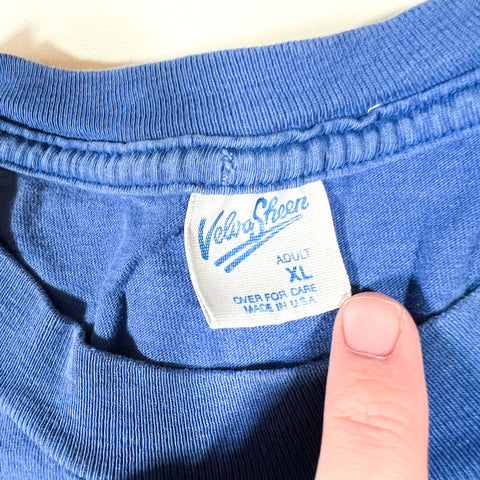 Classic early-’90s Warner Bros design with signature single-stitch sleeves and the soft, worn-in texture that only vintage Velva Sheen cotton delivers. Graphic shows moderate cracking and fade throughout, giving it the perfect vintage patina.