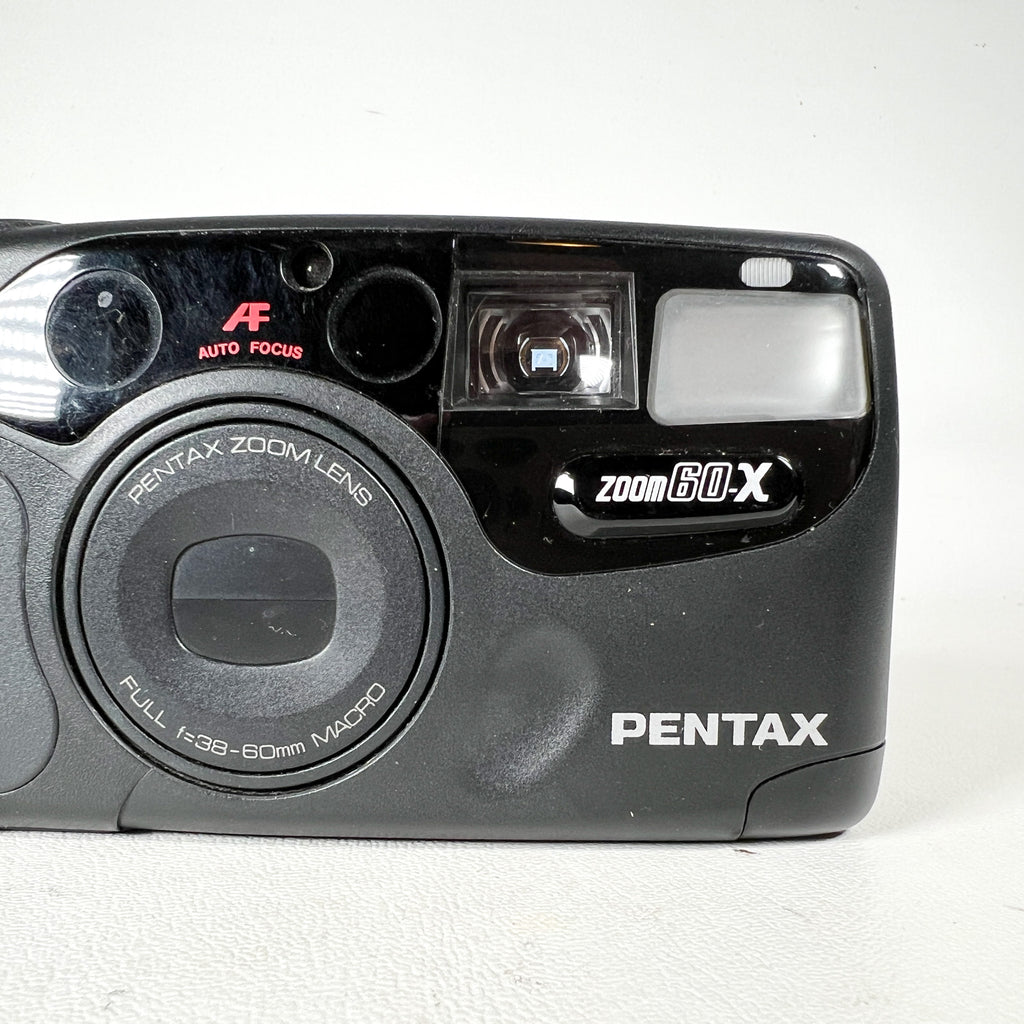 Compact and straightforward, this Pentax Zoom 60-X is a reliable 35mm point-and-shoot film camera designed for ease of use and everyday shooting. With a versatile zoom range and macro capability, it’s a great option for beginners or anyone looking for a simple, no-fuss film camera.
