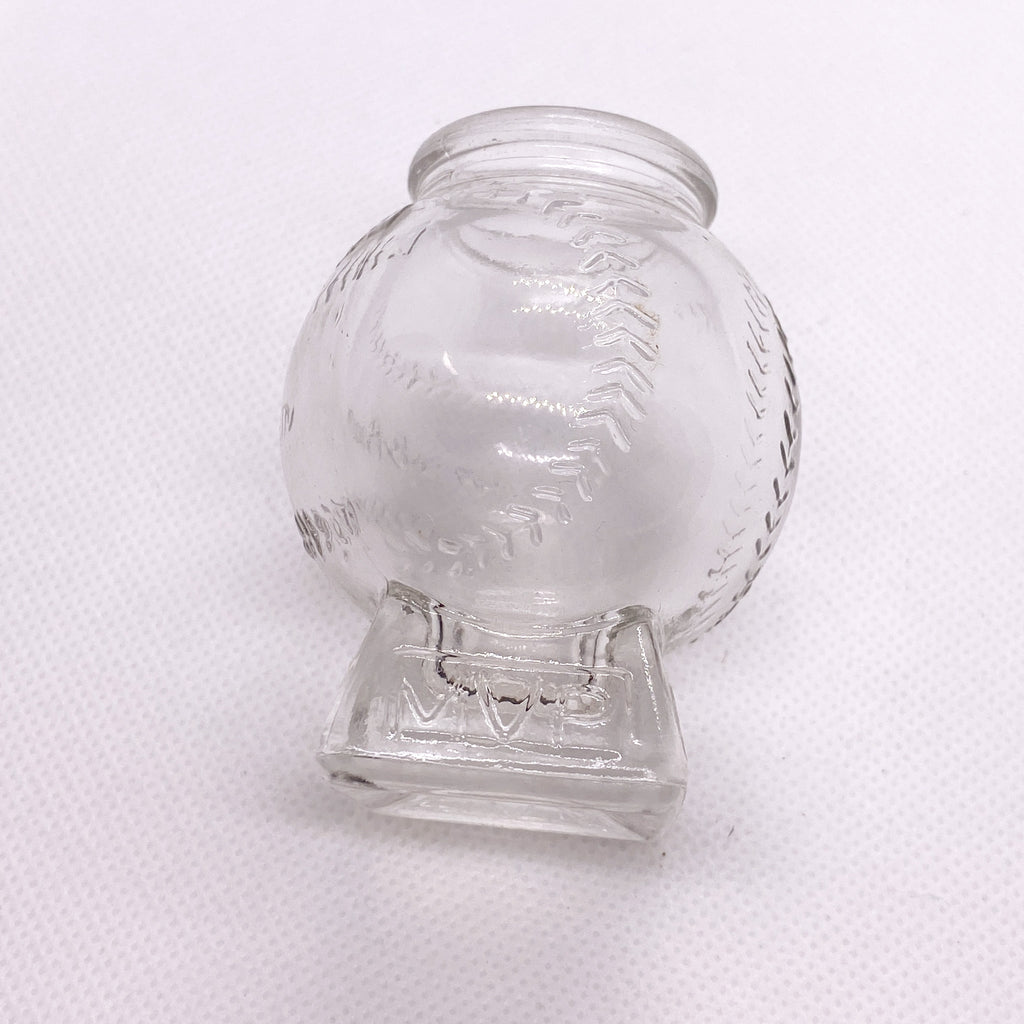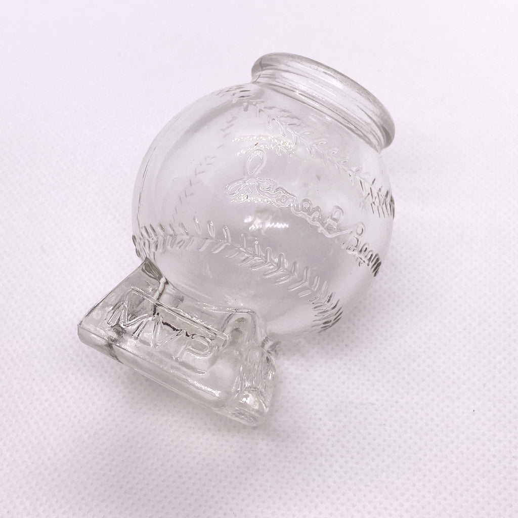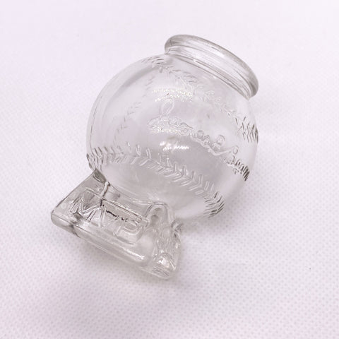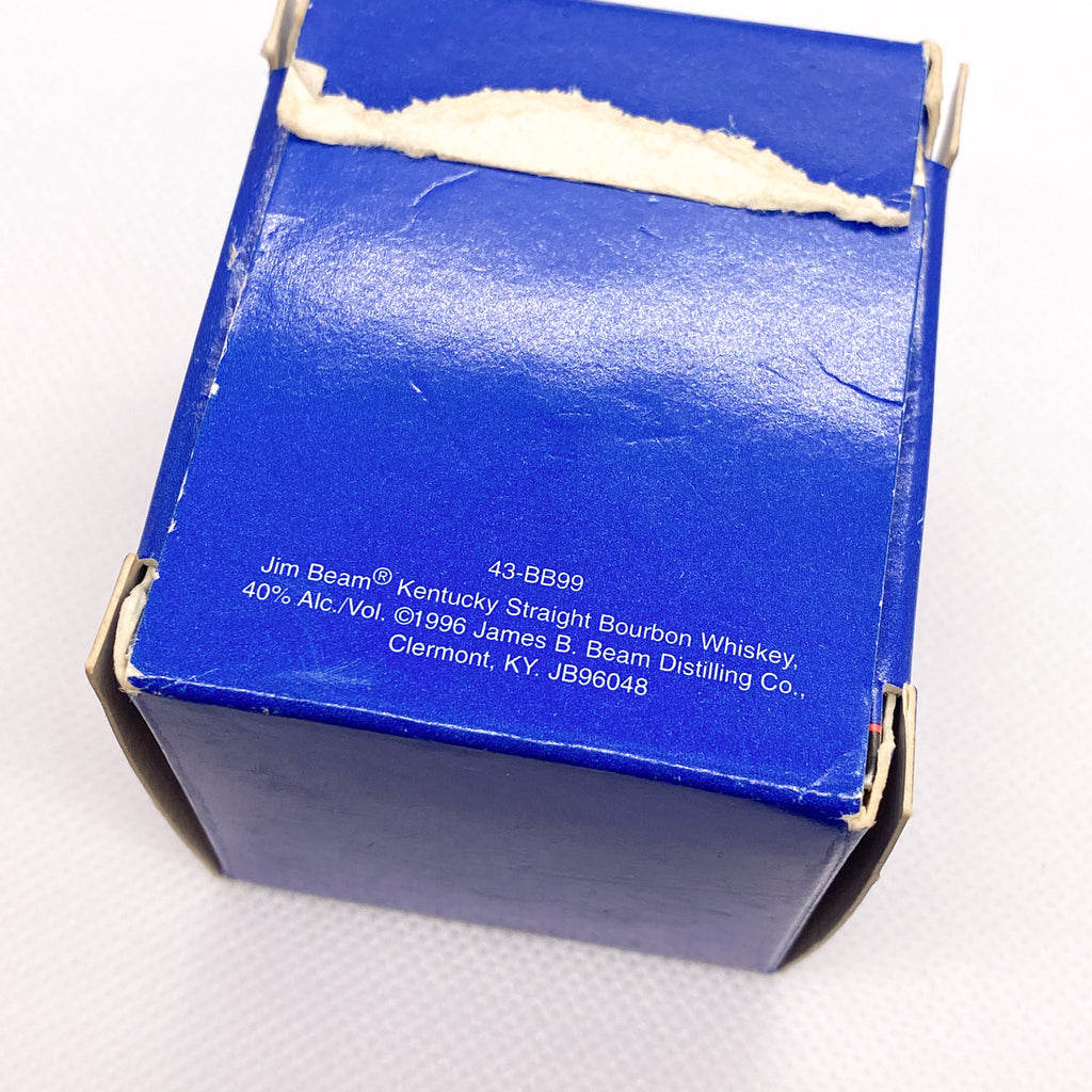 This is a 1996 Jim Beam limited-edition baseball-shaped MVP shot glass, complete with its original blue box. The shot glass features raised baseball stitching and an embossed James B. Beam signature across the front, along with an “MVP” pedestal-style base. A great collectible for baseball fans, barware collectors, or anyone who loves a unique Jim Beam promo piece.