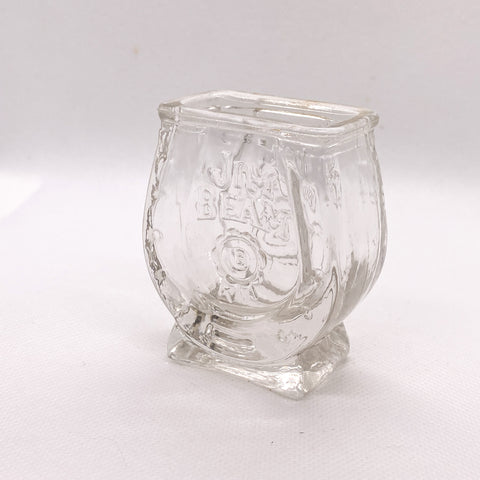 Perfect for collectors of Jim Beam memorabilia, barware enthusiasts, or anyone who loves unique vintage shot glasses. Great as a display piece or for your home bar setup.