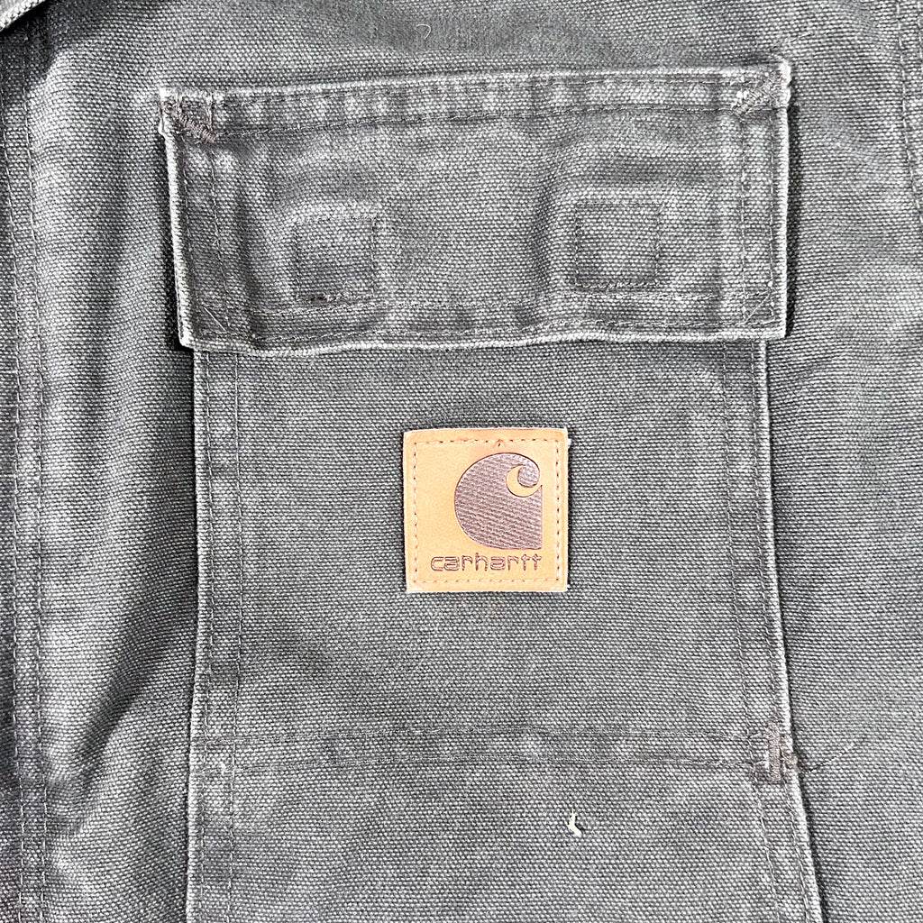 Vintage Carhartt C26 MOS Sandstone Traditional Coat in Moss Green, dated April 2003. This model is the Sandstone Traditional Coat with Arctic Quilt Lining, built from heavyweight 12 oz cotton sandstone duck with a nylon quilted lining and arctic-weight polyester insulation. Designed for serious cold weather and long-term durability, the C26 is one of Carhartt’s most rugged outerwear pieces.