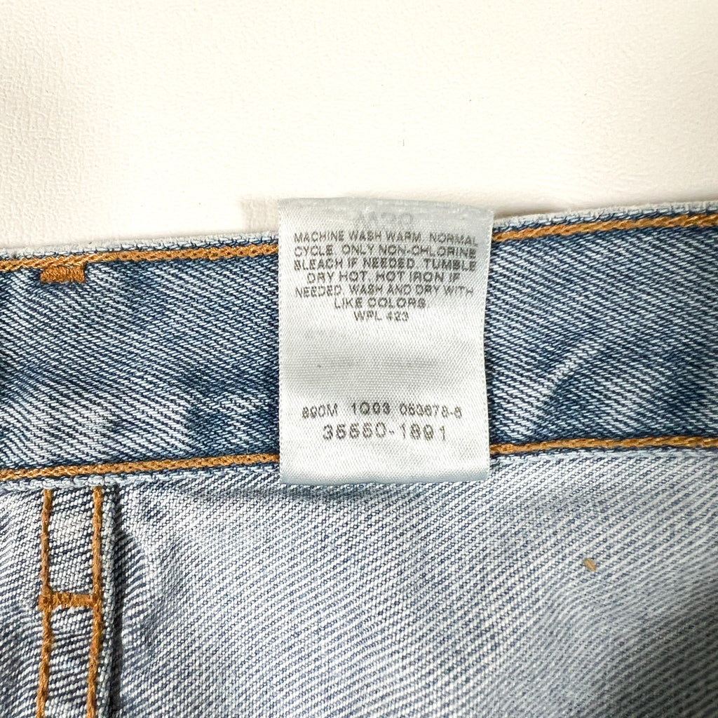 Authentic 2003 Levi’s 550 denim shorts featuring a clean light wash with subtle natural fading throughout. Classic relaxed fit with a higher rise and roomy leg opening—true early 2000s Levi’s silhouette.