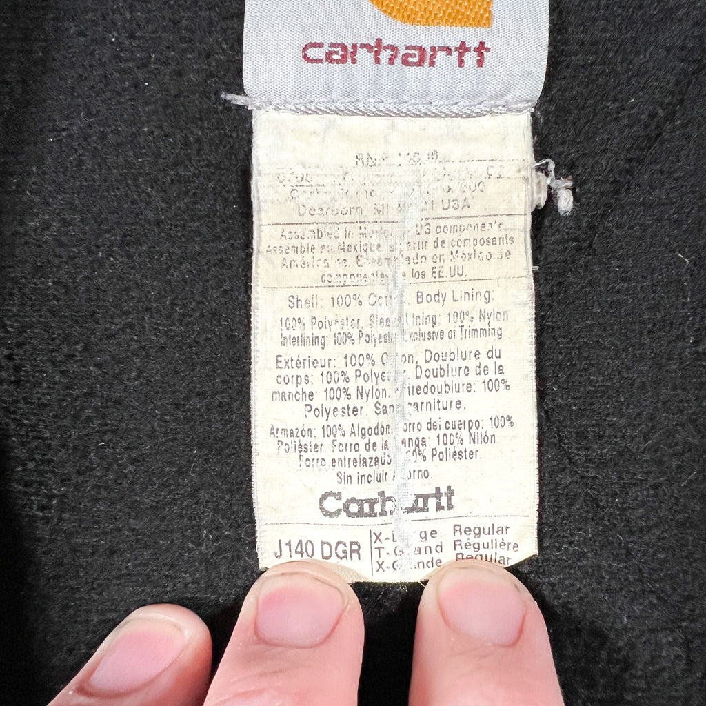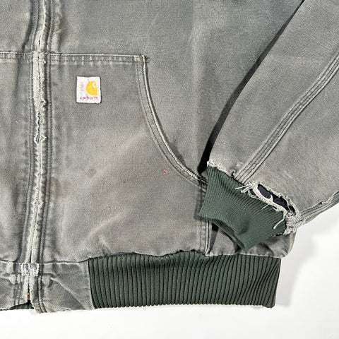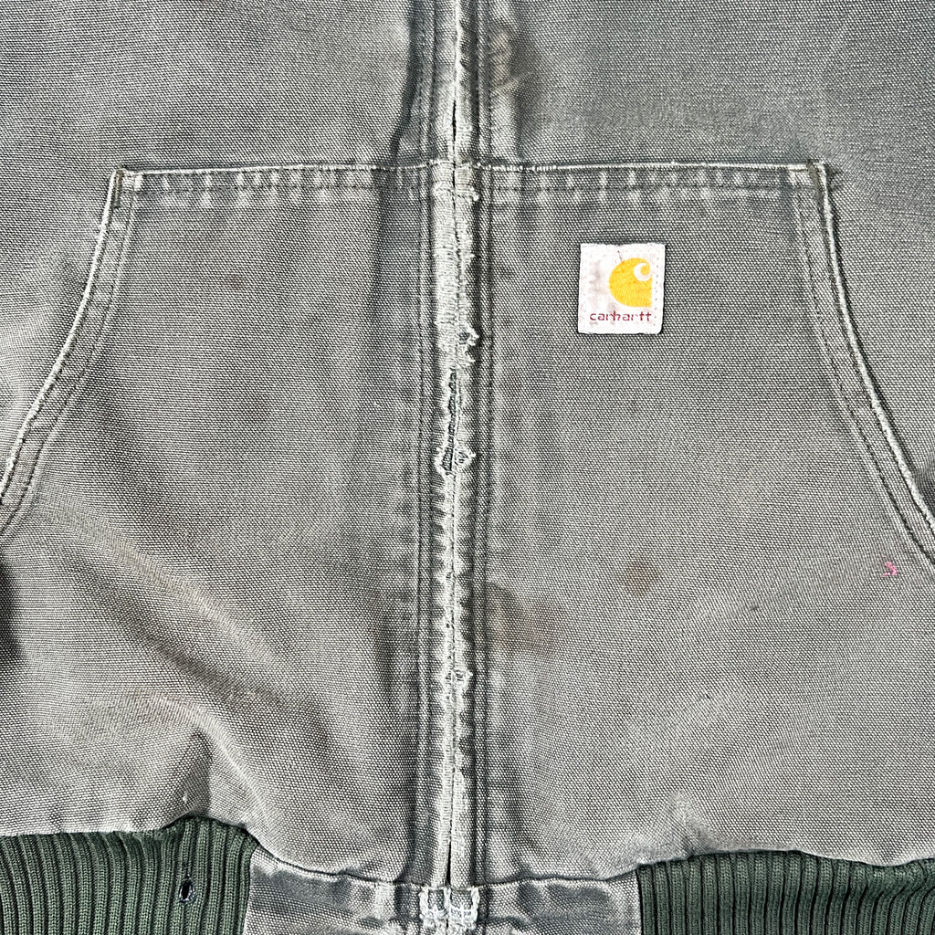 vintage carhartt j140, carhartt active jacket j140 dgr, dark green carhartt jacket, 2005 carhartt active jacket, distressed carhartt jacket, workwear hoodie jacket, carhartt firm duck jacket, embroidered work jacket, as is carhartt jacket