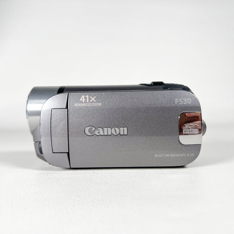 Capture your home videos in true early-2010s style with the Canon FS30 — a compact digital camcorder known for its lightweight build, intuitive controls, and easy shooting experience. This model records standard-definition video and offers 8GB of internal memory, plus the option to expand with an SD card.