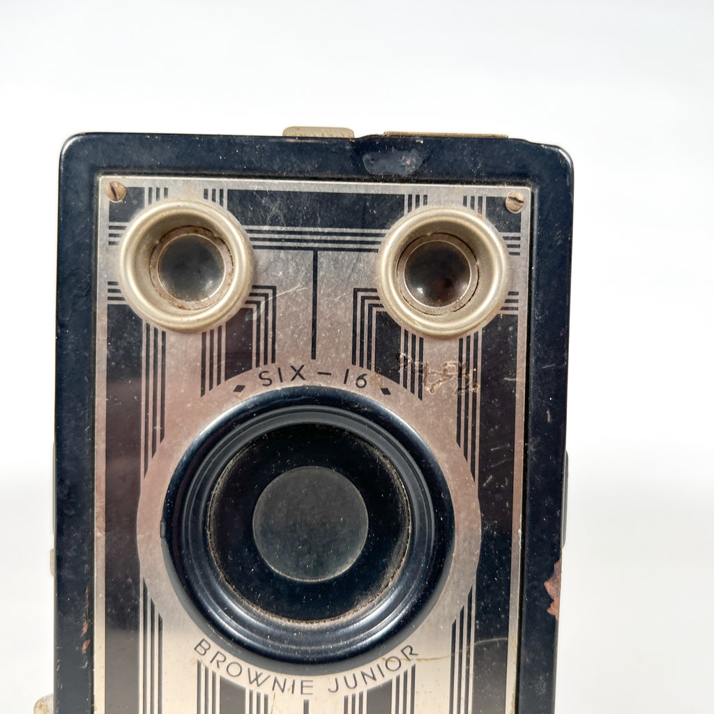 Kodak Brownie Junior Six-16, Brownie Junior camera, vintage Kodak Brownie, 616 film camera, 1930s box camera, Art Deco camera, Eastman Kodak Rochester NY, antique film camera, collectible camera, display camera, camera repair project
