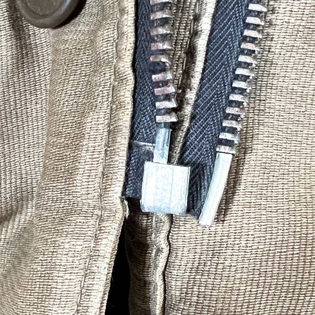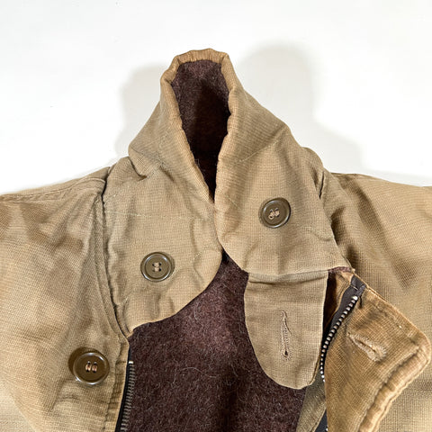 Condition: Heavy wear consistent with age; missing zipper, mismatched buttons, name marking on cuff; sold as-is (see photos)