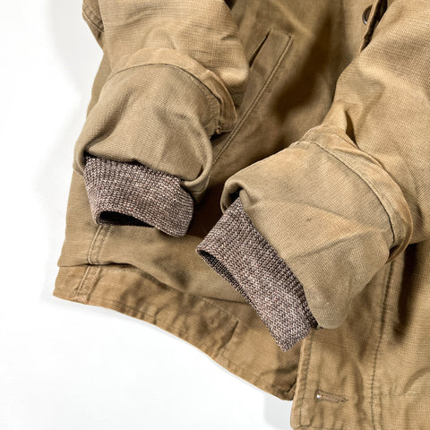 This is a vintage civilian “N-1 Type” deck jacket, modeled after the iconic U.S. Navy N-1 issued during WWII. Unlike official military contract versions, this jacket was produced for the civilian market in the postwar era, keeping the same rugged design and timeless workwear aesthetic as the originals.
