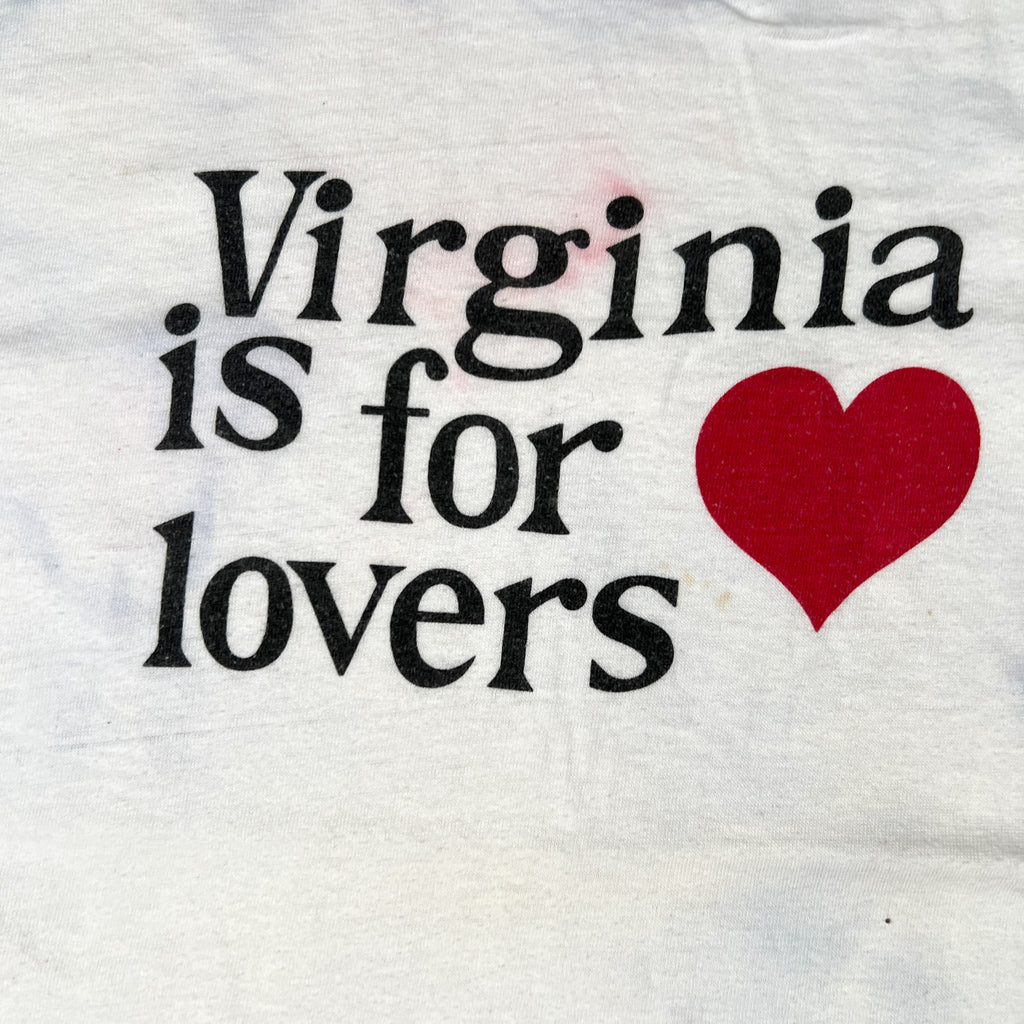 Authentic vintage 1970s “Virginia Is for Lovers” ringer tee featuring the iconic heart graphic and classic contrast collar and sleeve trim. Soft, broken-in cotton with a true vintage feel and great character throughout. This is a perfect piece for collectors of tourism graphics, state souvenirs, or classic Americana tees.