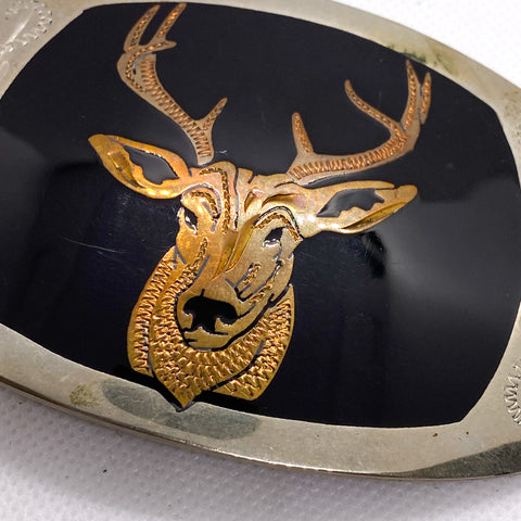 vintage belt buckle, stag head buckle, deer buckle, western belt buckle, german silver buckle, nickel silver buckle, black enamel buckle, wildlife buckle, vintage western buckle