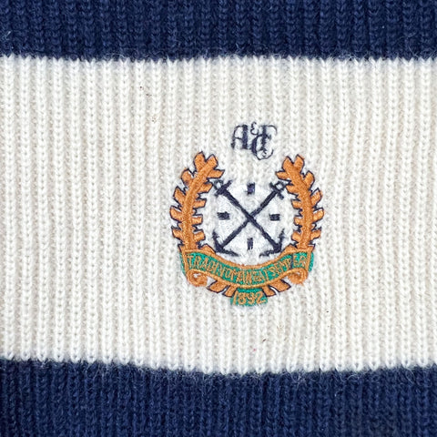 vintage abercrombie sweater, 80s a&f wool sweater, vintage crest knit, abercrombie and fitch pullover, navy cream colorblock sweater, retro wool sweater, 1980s knitwear, collegiate style sweater vintage, cobblestore vintage sweater