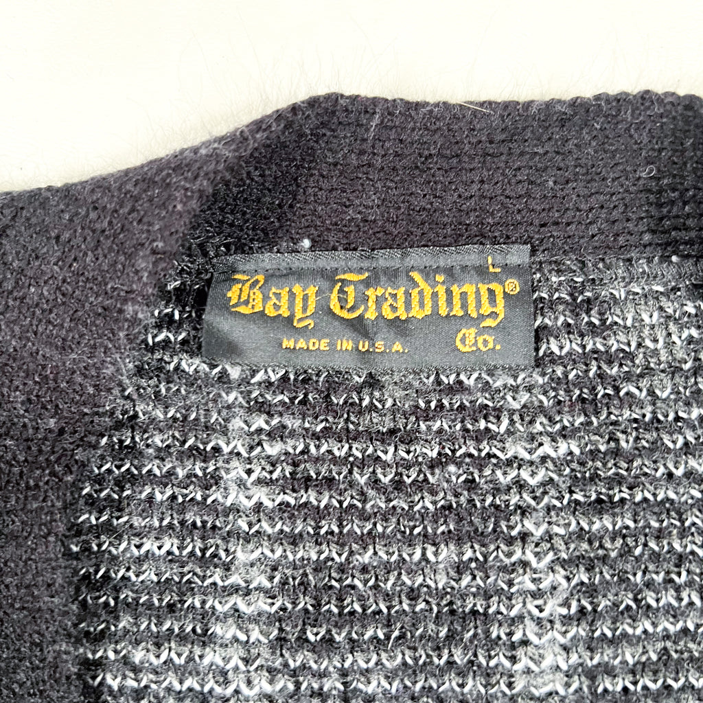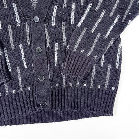 vintage bay trading cardigan, 80s knit sweater, made in usa cardigan, retro button-up sweater, mens vintage knitwear, gray patterned cardigan, minimalist vintage sweater, 1980s style cardigan