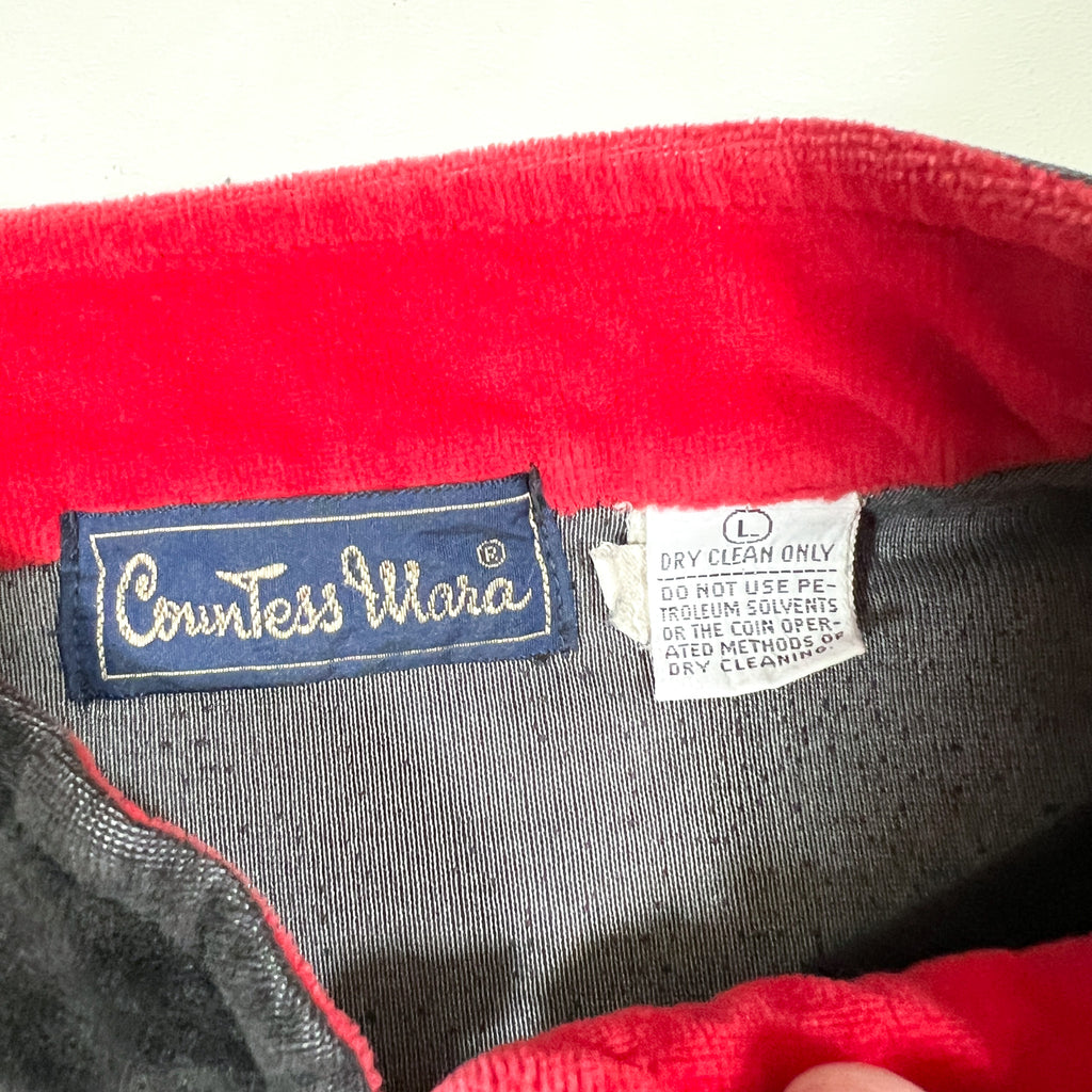 vintage track jacket, 80s velour jacket, countess mara sportswear, retro black red zip jacket, vintage athleticwear, velour bomber, 1980s mens fashion, preppy sports jacket, vintage countess mara, 80s streetwear