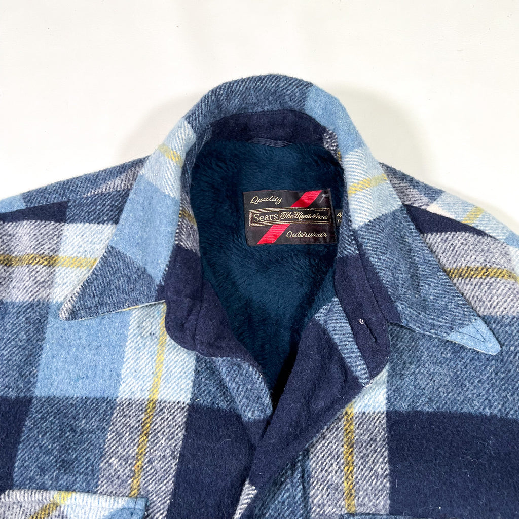 vintage sears jacket, 80s plaid jacket, fleece lined coat, sears the mens store outerwear, 1980s flannel jacket, retro workwear coat, blue plaid winter jacket, heritage outerwear