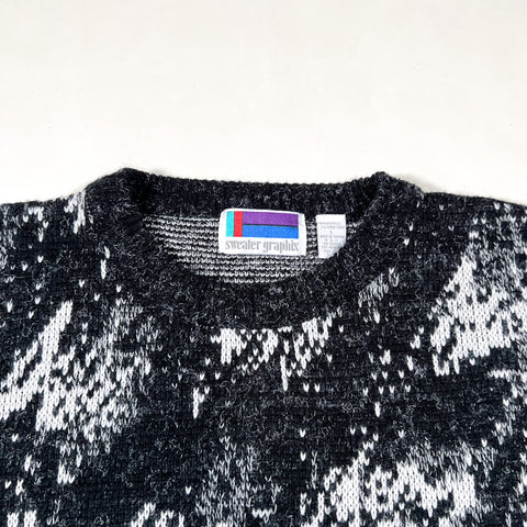 vintage 80s sweater, Sweater Graphix, abstract knit sweater, black and white sweater, fuzzy acrylic sweater, retro winter knit, unisex vintage sweater, 80s fashion, patterned knit pullover