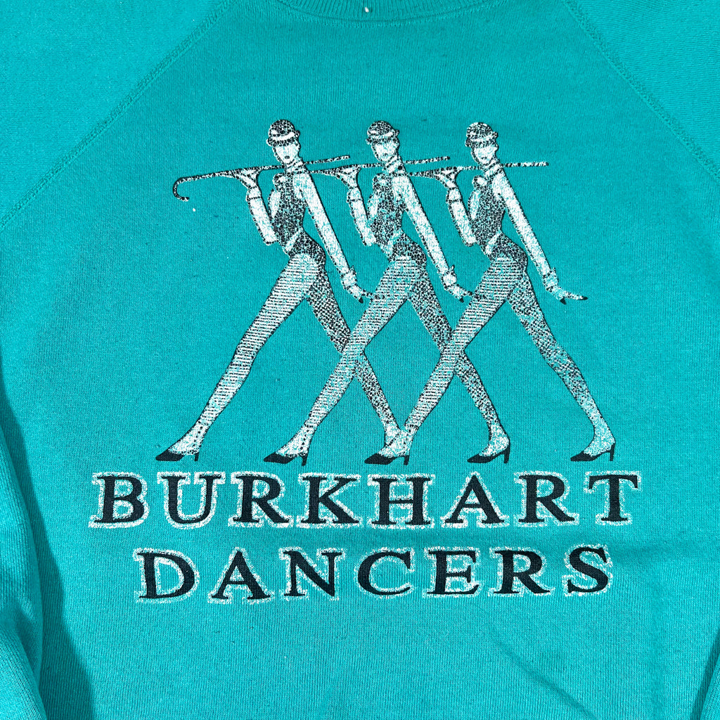 80s crewneck, vintage dance sweatshirt, teal vintage sweater, burkhart dancers, burklyn ballet theatre, performing arts vintage, 1980s graphic crewneck, hanes activewear vintage, teal crewneck, cobblestore vintage