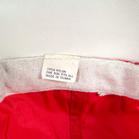 Good vintage condition overall with visible wrinkling and light wear consistent with age and nylon material. Interior sweatband shows signs of use. No major structural issues. Please review all photos closely for condition details.