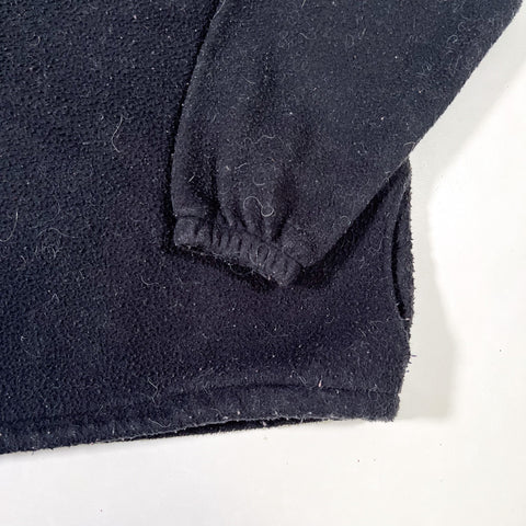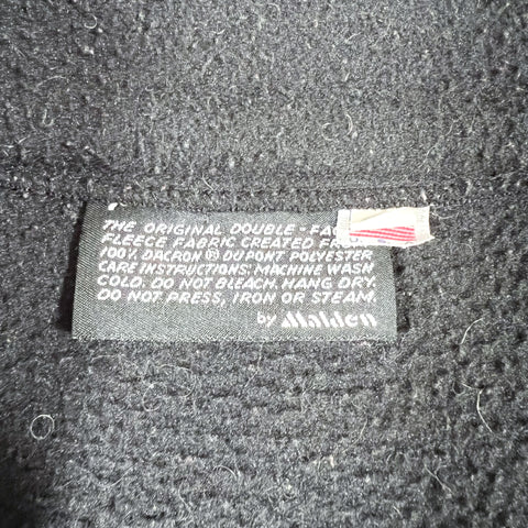 This is a vintage USA-made Malden PolarFleece pullover labeled size L, with a relaxed fit that works comfortably up to XL. Features the classic double-faced Malden Mills fleece, 1/4-zip front, elastic cuffs, and warm, easy-wear construction. Some piling and hair were present in photos, but the piece has since been cleaned.