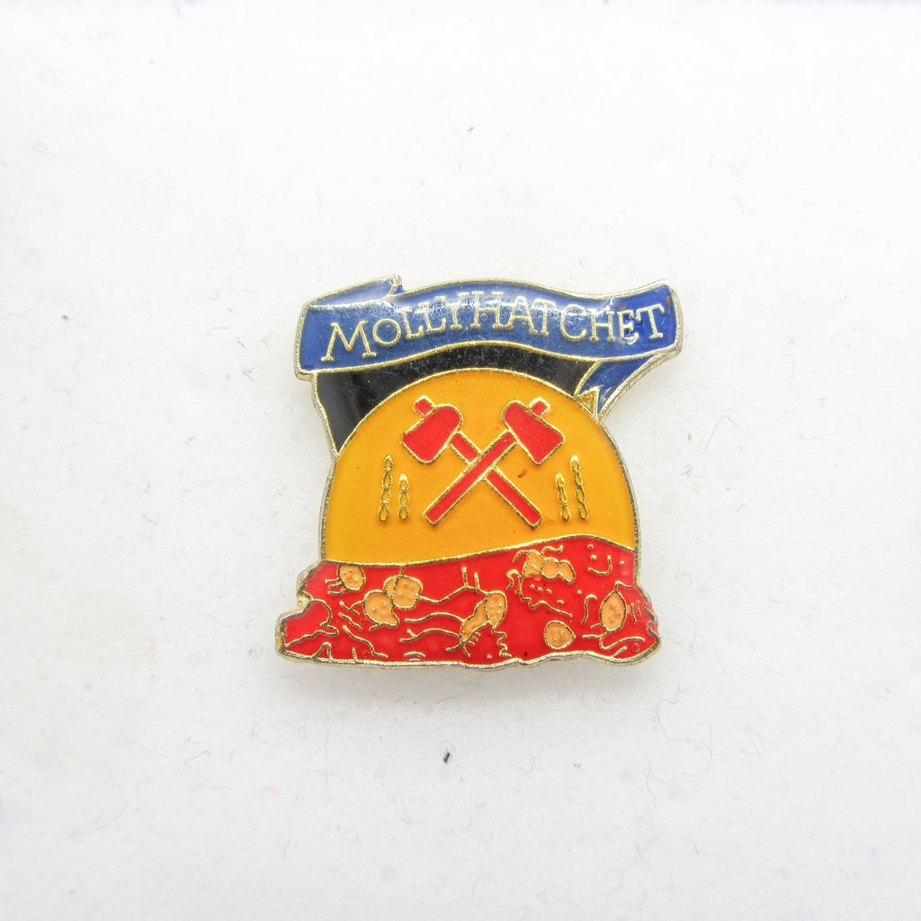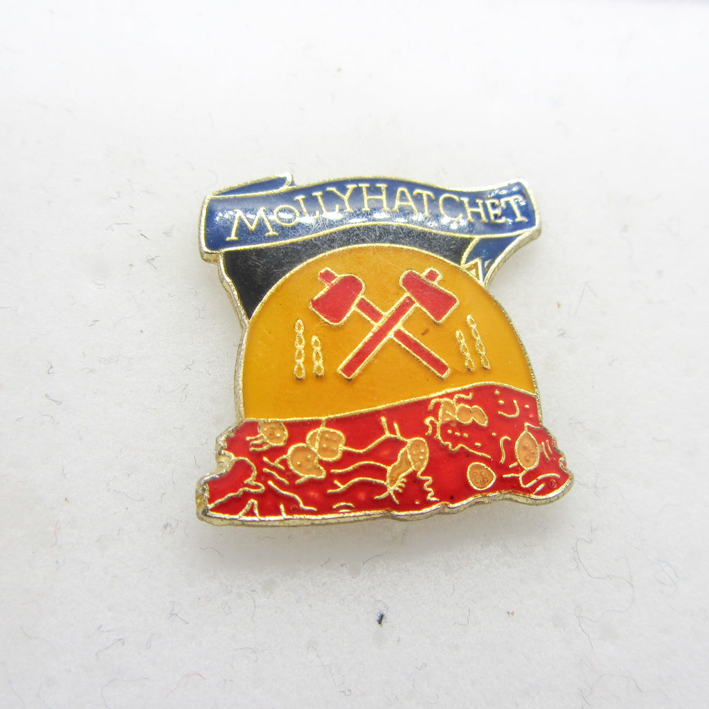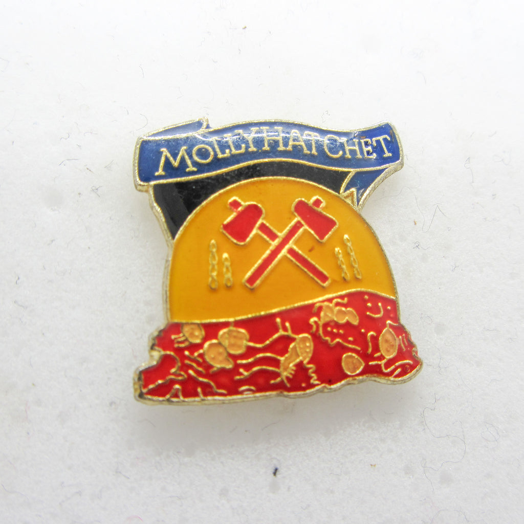 Molly Hatchet pin, Molly Hatchet lapel pin, vintage Southern rock pin, Molly Hatchet collectible, vintage band enamel pin, classic rock pin, Molly Hatchet merch, Southern rock memorabilia, vintage concert pin, rock band pin
