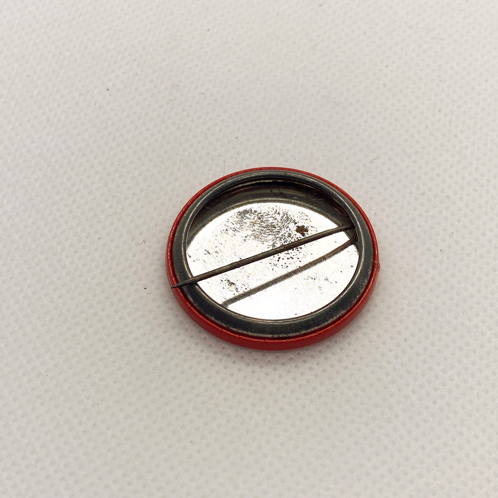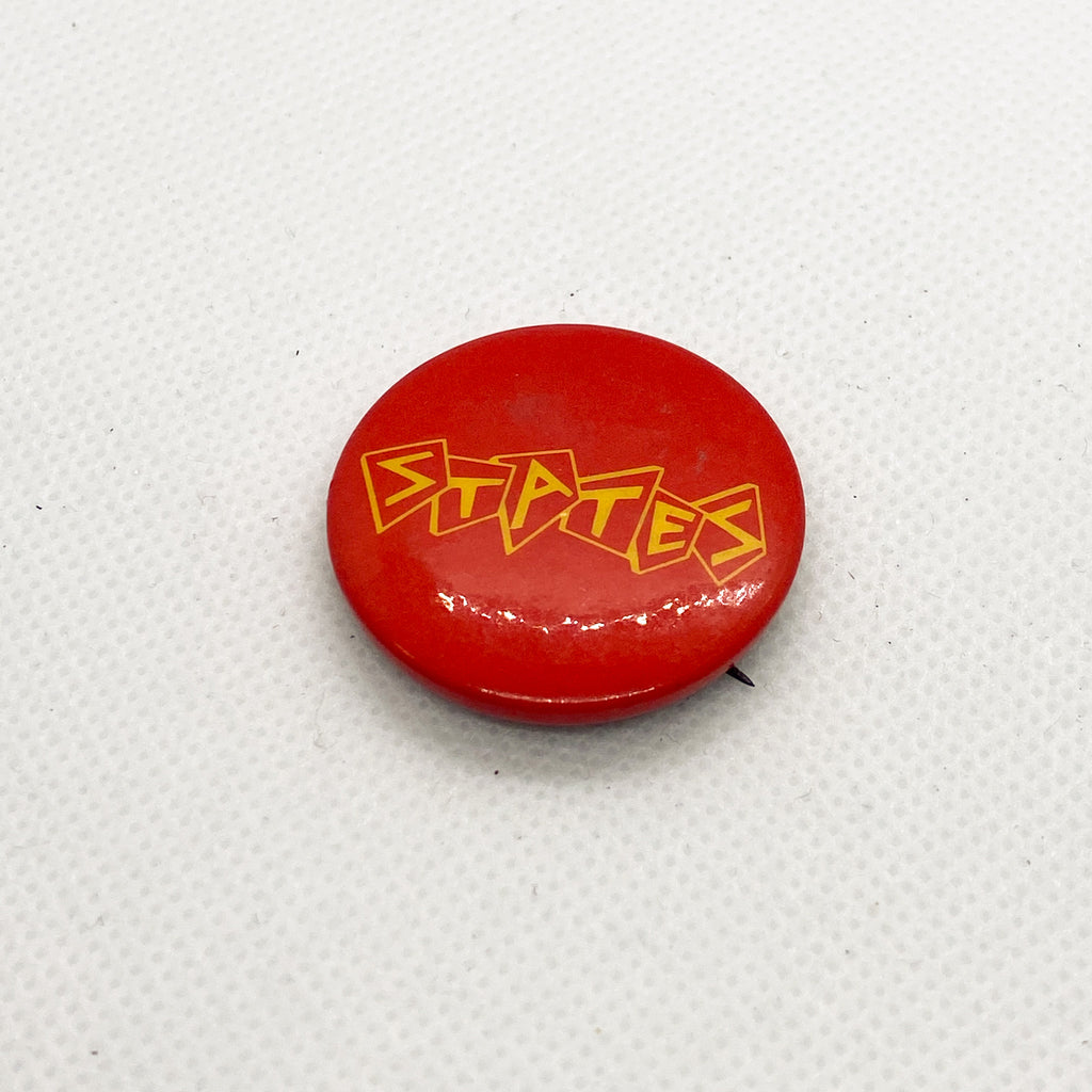 Rare vintage States band pinback button from the early Norfolk, Virginia punk scene. This 1.25-inch button features a bold red background with sharp yellow lettering in an angular, punk-inspired font.
