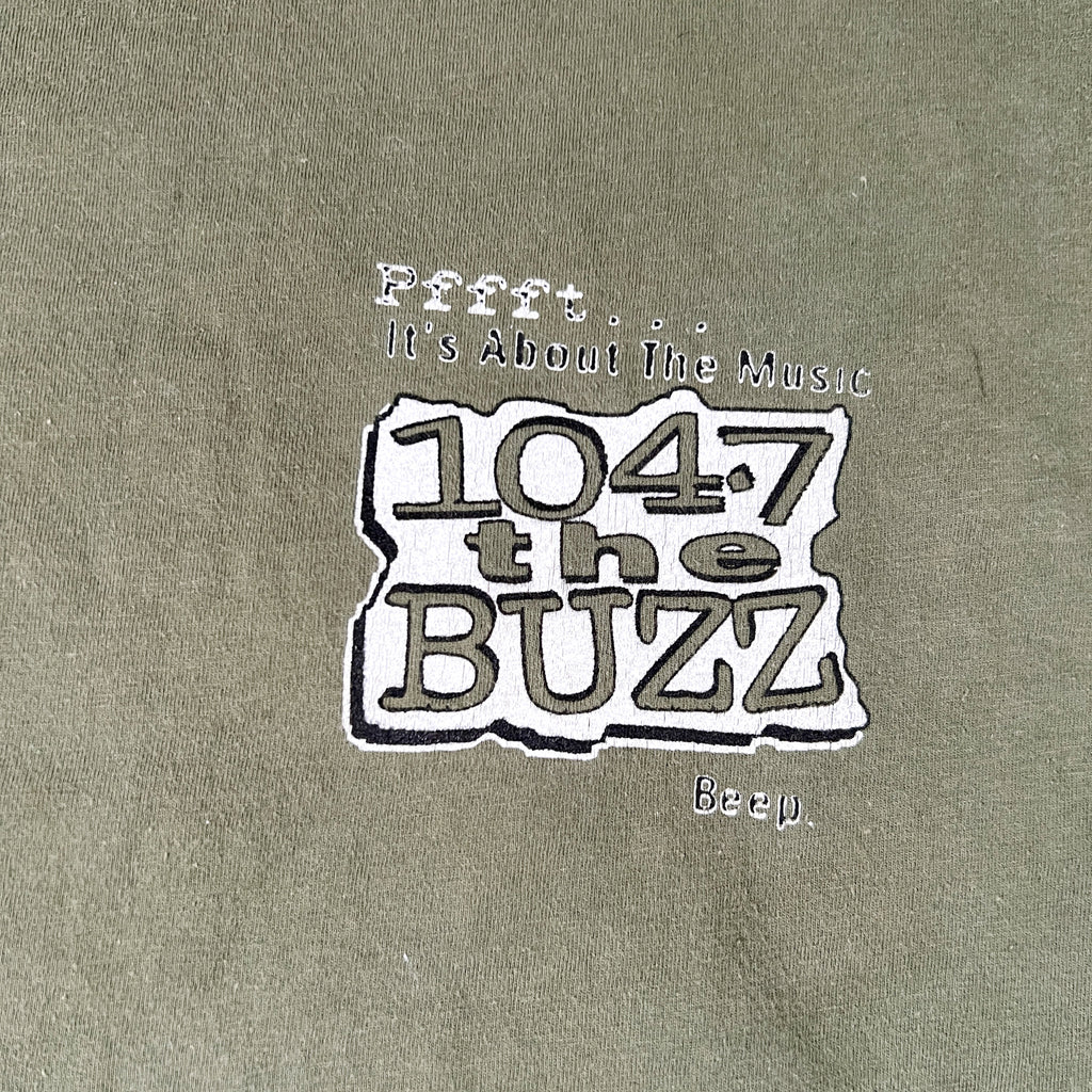 vintage radio station t shirt, 104.7 the buzz shirt, richmond alternative rock tee, 90s promo t shirt, vintage music radio tee, oversized 90s t shirt, global basics heavyweight tee