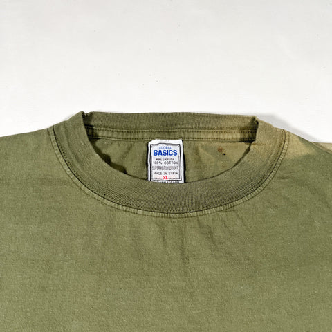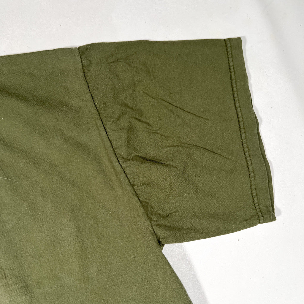 Authentic vintage 1990s 104.7 The Buzz radio station T-shirt featuring front chest hit and large back graphic reading “Richmond’s New Rock Alternative.” This is a classic 90s radio promo tee tied to Richmond’s alternative rock scene, with simple, bold branding and great faded olive green color.