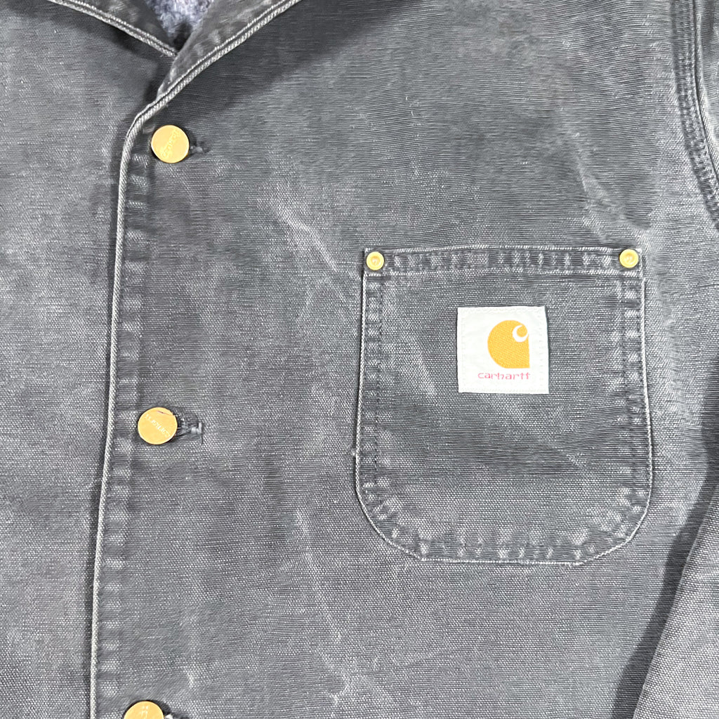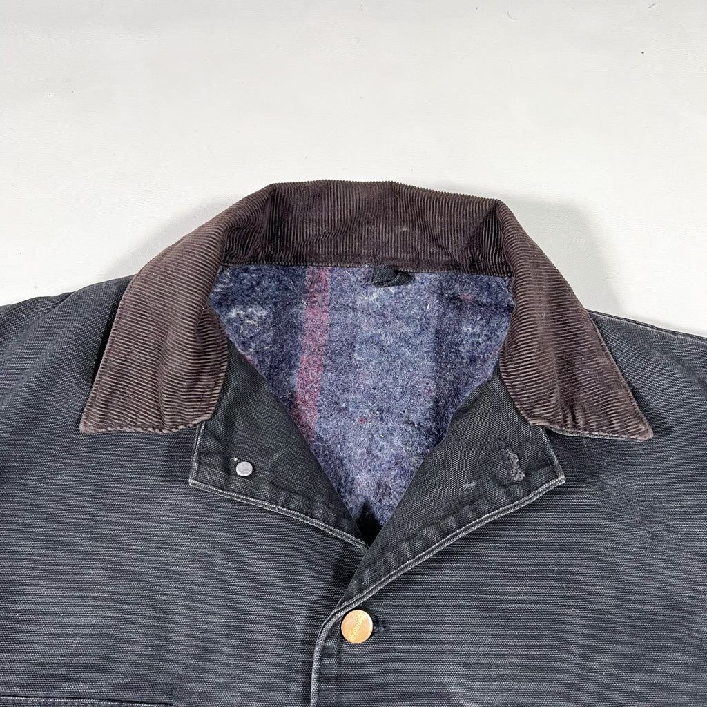 vintage carhartt black jacket, 90s carhartt chore jacket, black blanket lined carhartt, vintage workwear jacket, duck canvas carhartt, corduroy collar carhartt, vintage carhartt coat