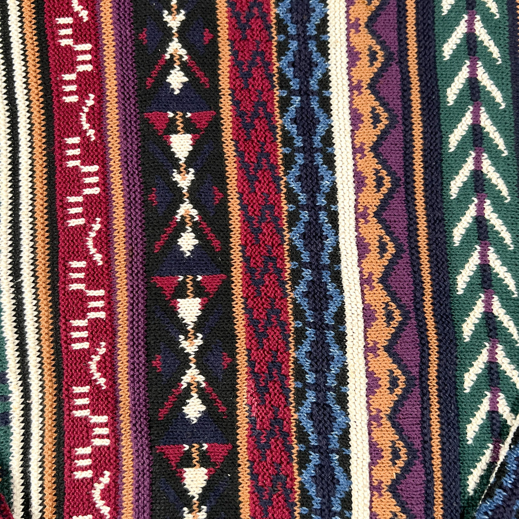 The sweater has a relaxed, slightly boxy fit with ribbed collar, cuffs, and hem. Heavyweight construction makes it ideal for fall and winter layering, statement fits, or collectors of vintage Ralph Lauren / Chaps knits. A standout piece with strong visual texture and color.