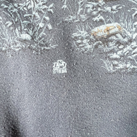 Soft fleece interior with a comfortable, broken-in feel. Deep navy blue base with a full front graphic that remains vibrant and well-preserved. A great vintage piece for anyone into wildlife art, outdoorswear, or classic 90s graphic sweatshirts.