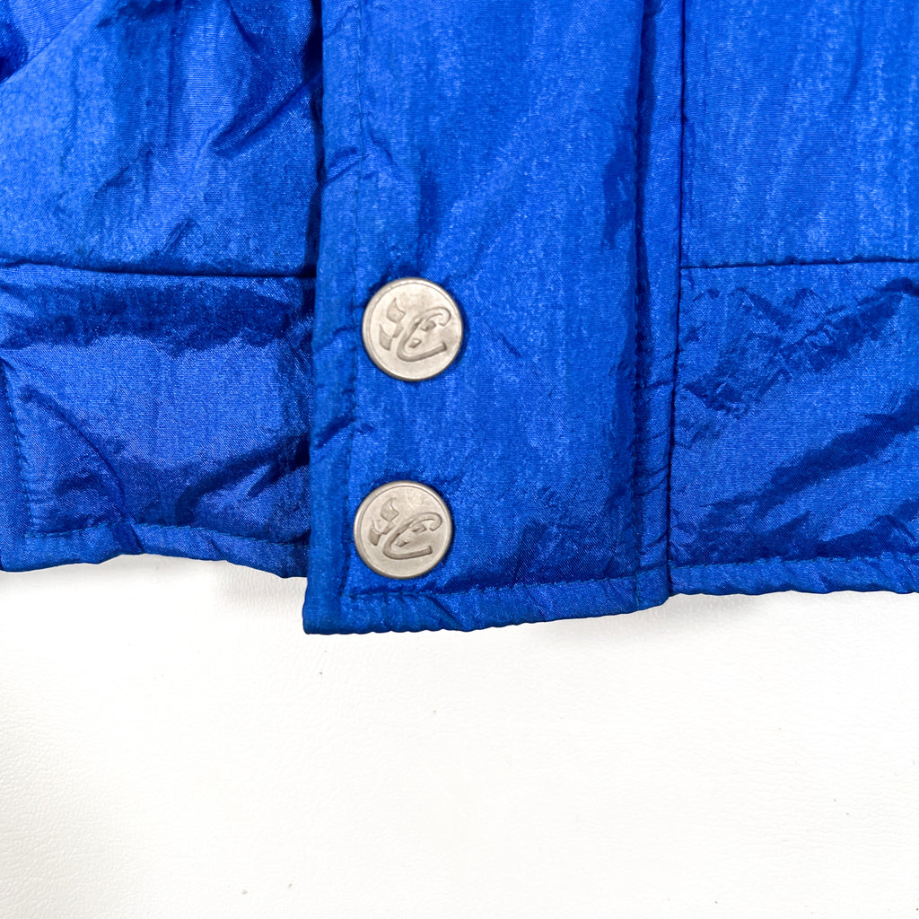 Constructed from a 100% nylon shell and lining with a 100% polyester fill — lightweight yet insulated for cooler weather. Classic red, blue, and black color blocking with snap button closures featuring “C” Chase Authentics branding.