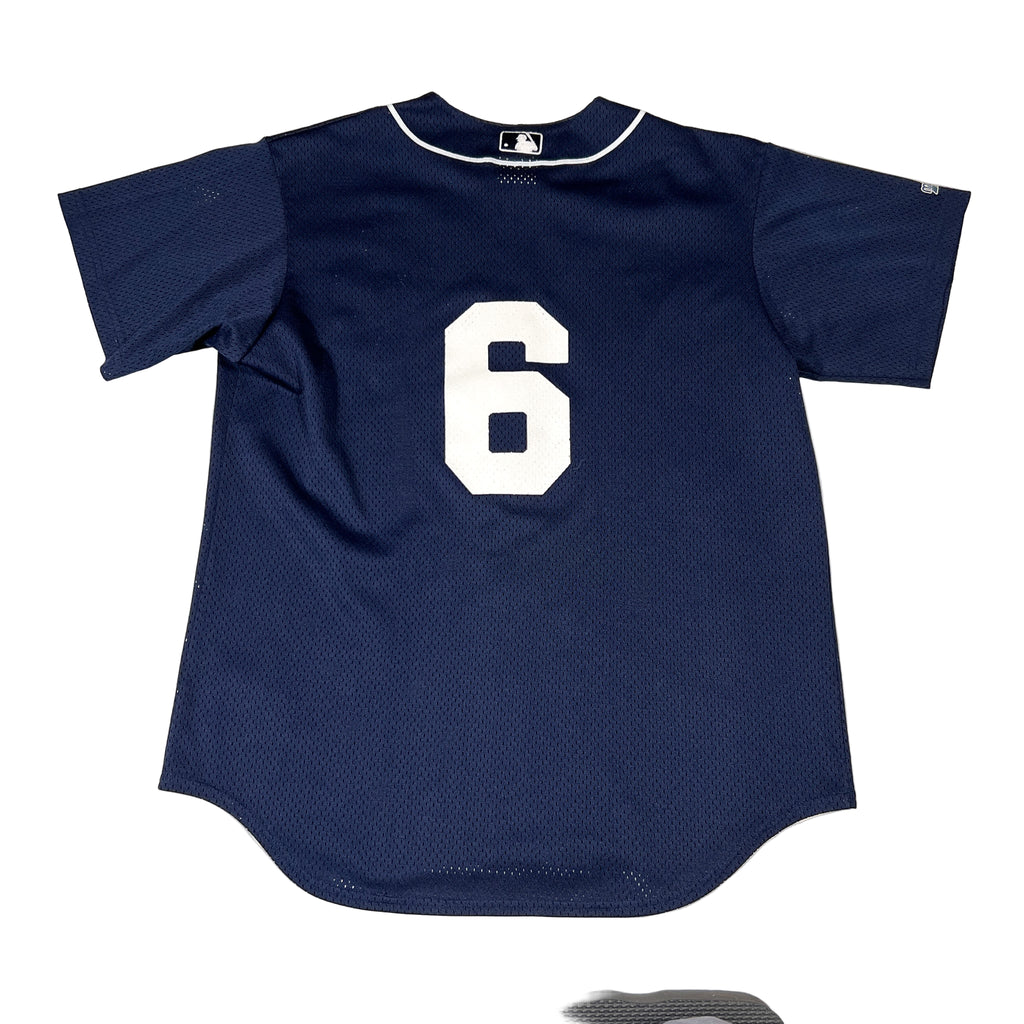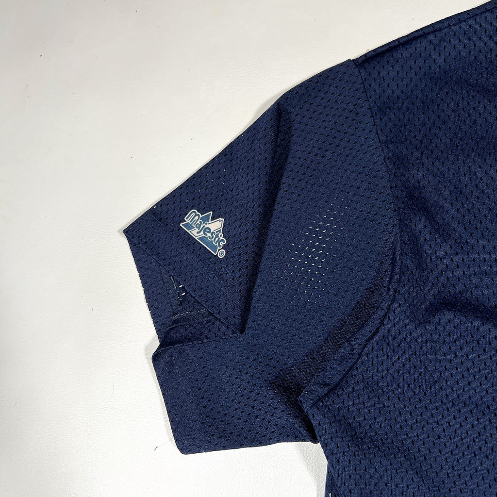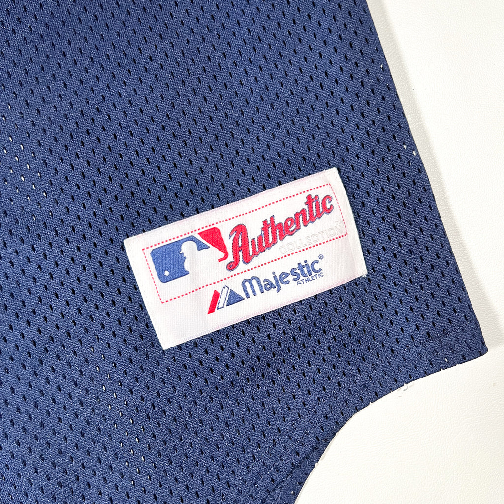 Classic 1990s Detroit Tigers #6 Tony Phillips jersey by Majestic Athletic, part of the official MLB Authentic Collection. Made in the USA from breathable navy mesh polyester, this jersey features the bold white Old English “D” tackle-twill logo on the chest, Phillips’ number 6 on the back, and crisp white piping down the button front.