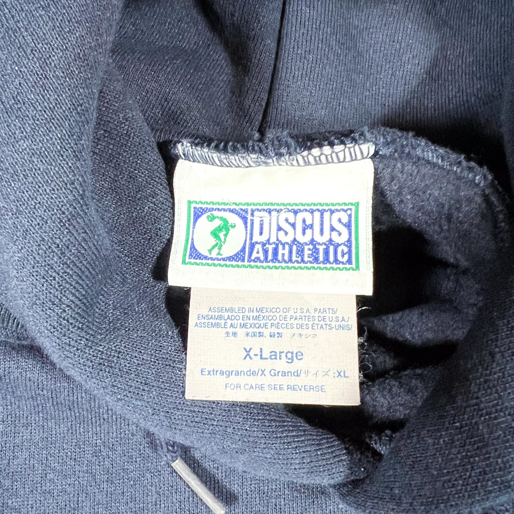 Discus Athletic is well known for producing high-quality blanks throughout the 90s, prized for their weight, structure, and durability. This hoodie has a clean, minimal look that works perfectly as an everyday vintage hoodie, a layering staple, or a timeless piece of 90s sportswear-inspired streetwear.
