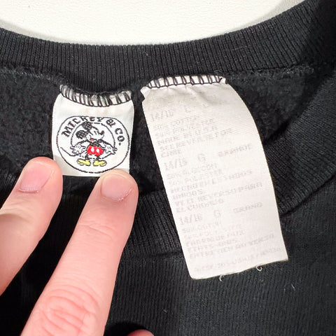 Official Disney piece with a soft fleece interior, ribbed collar, cuffs, and hem. A great smaller-size vintage Disney sweatshirt that works well worn fitted or slightly cropped.